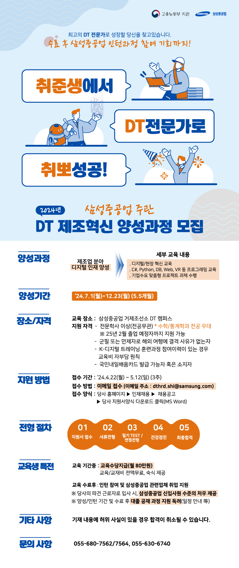 [마감임박][삼성중공업 주관] 2024 DT제조혁신 양성과정 모집 안내