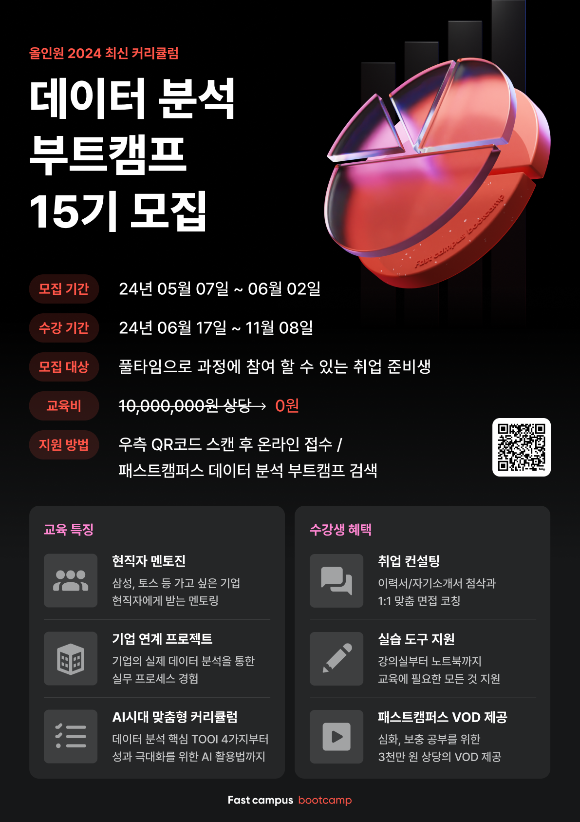 패스트캠퍼스 데이터 분석 부트캠프 추천드립니다.