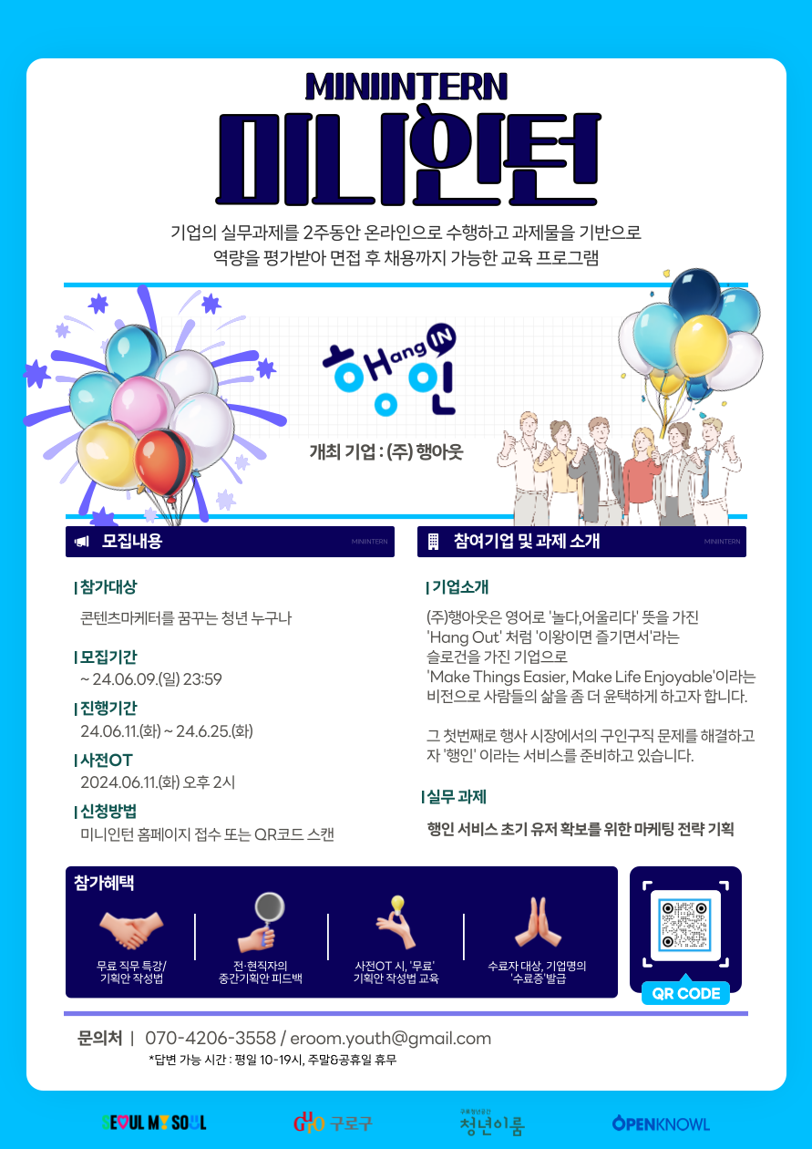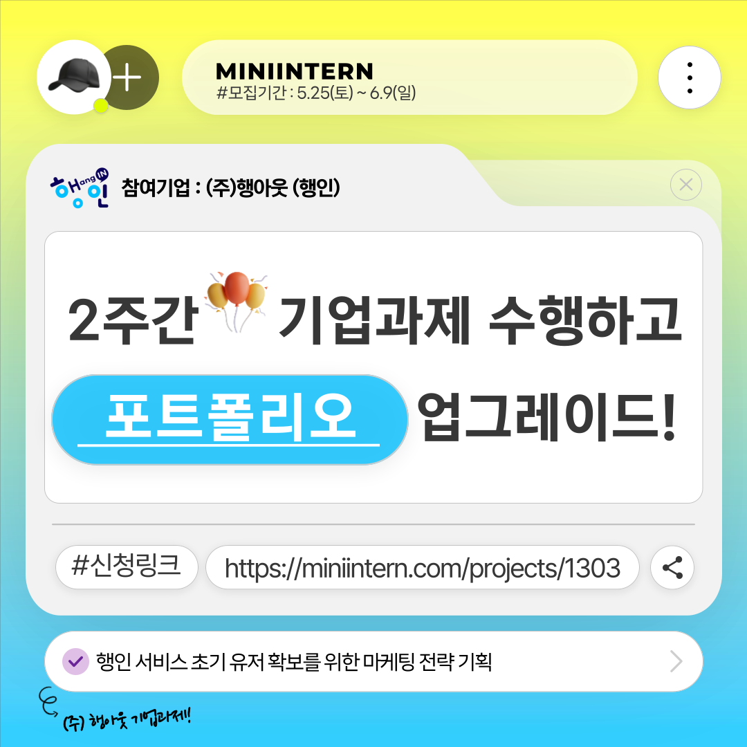 [미니인턴X행아웃] 마케팅 전략 짜고 포트폴리오 업그레이드 할 사람!?