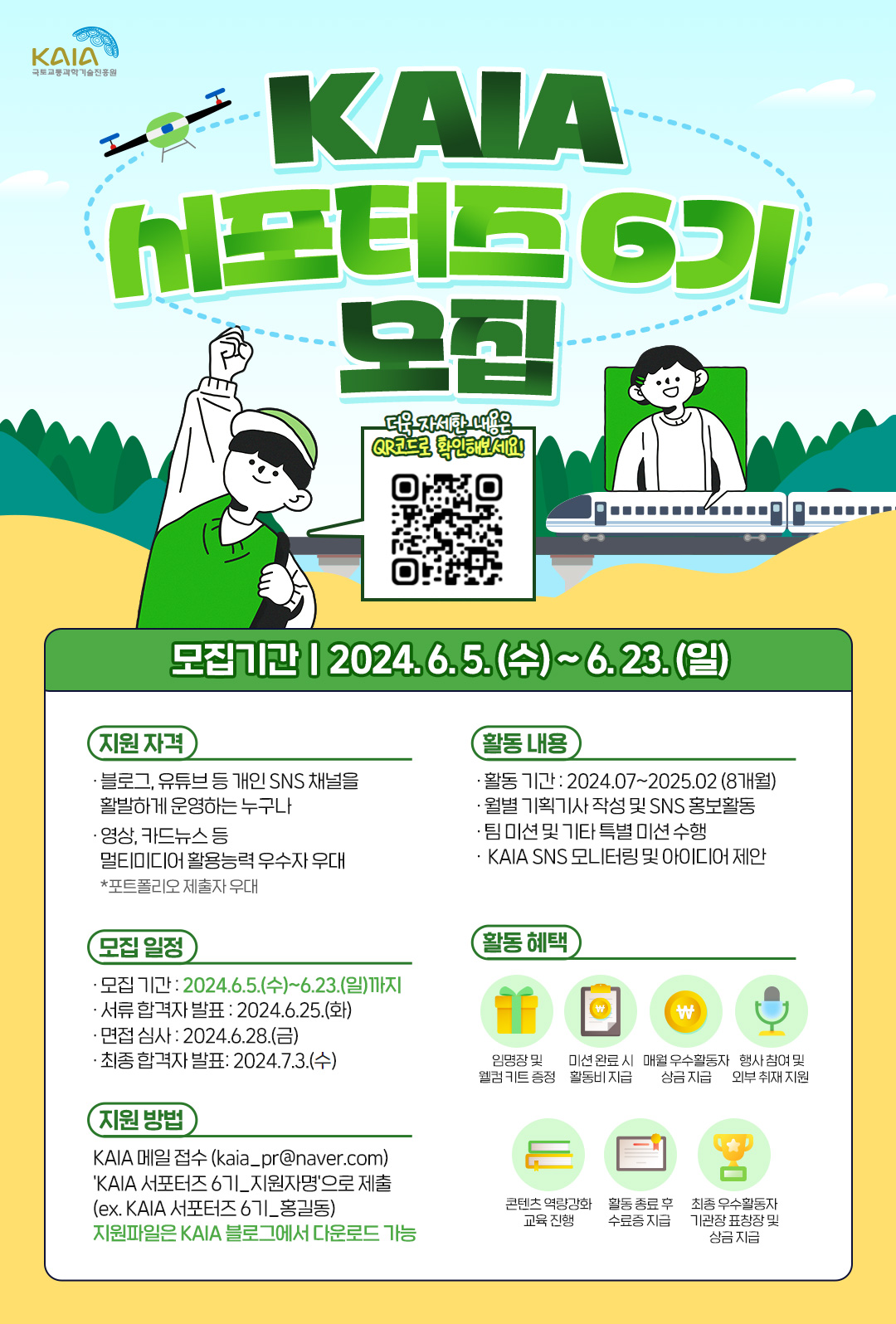 [국토교통과학기술진흥원] 2024 KAIA 서포터즈 6기 모집 (~6/23)