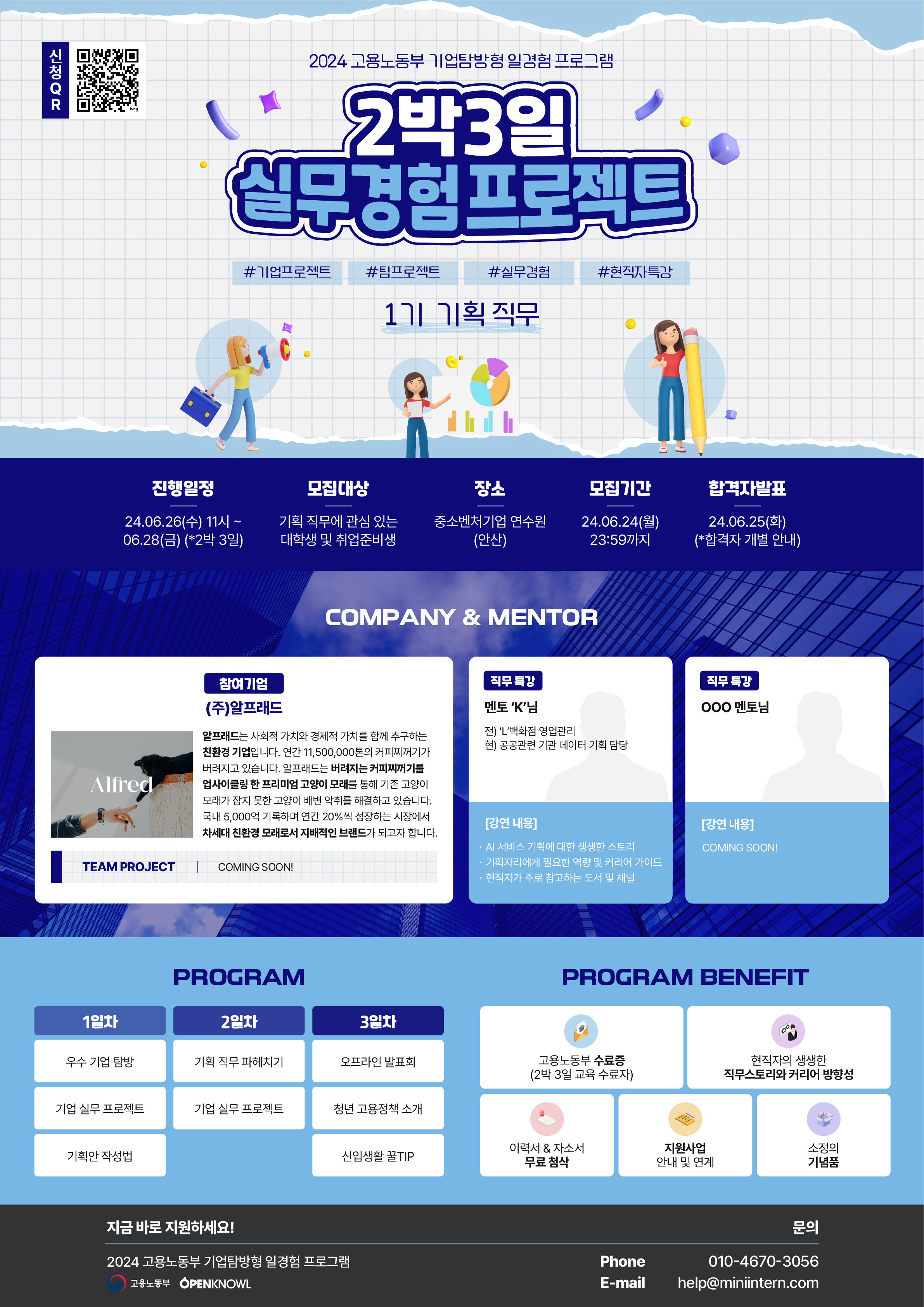 2024 고용노동부 기업탐방형 일경험 프로그램 2박 3일 실무경험프로젝트