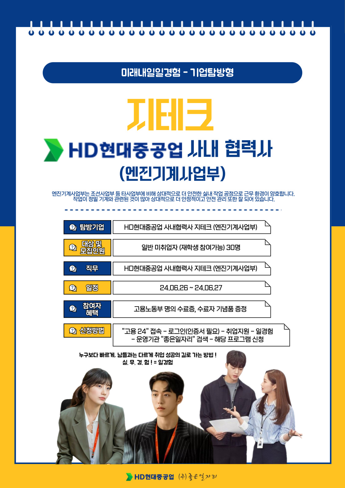 고용노동부 기업탐방 프로그램 안내 (HD현대미포, 지테크_HD현대중공업 엔진기계사업부 사내협력사)