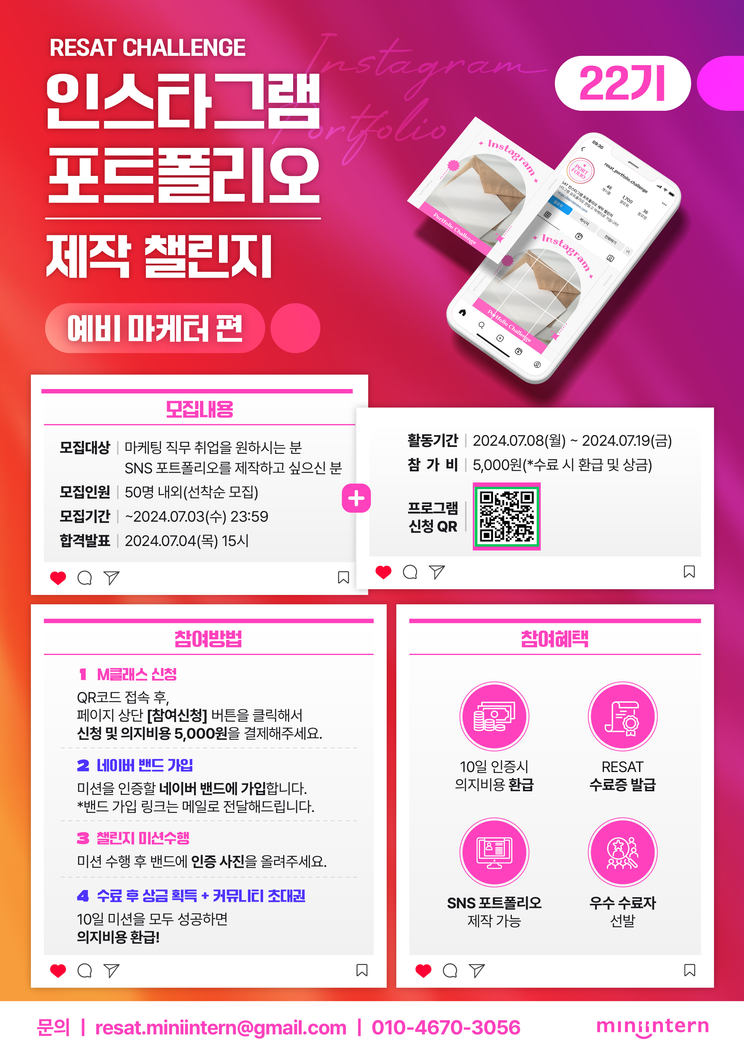 <RESAT 인스타그램 포트폴리오 제작 챌린지 22기>와 함께 하세요!