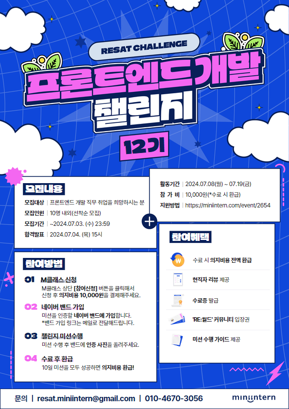 - 참가 비용 : 유료 (의지 비용 10,000원) *10일 수료 시 환급 예정