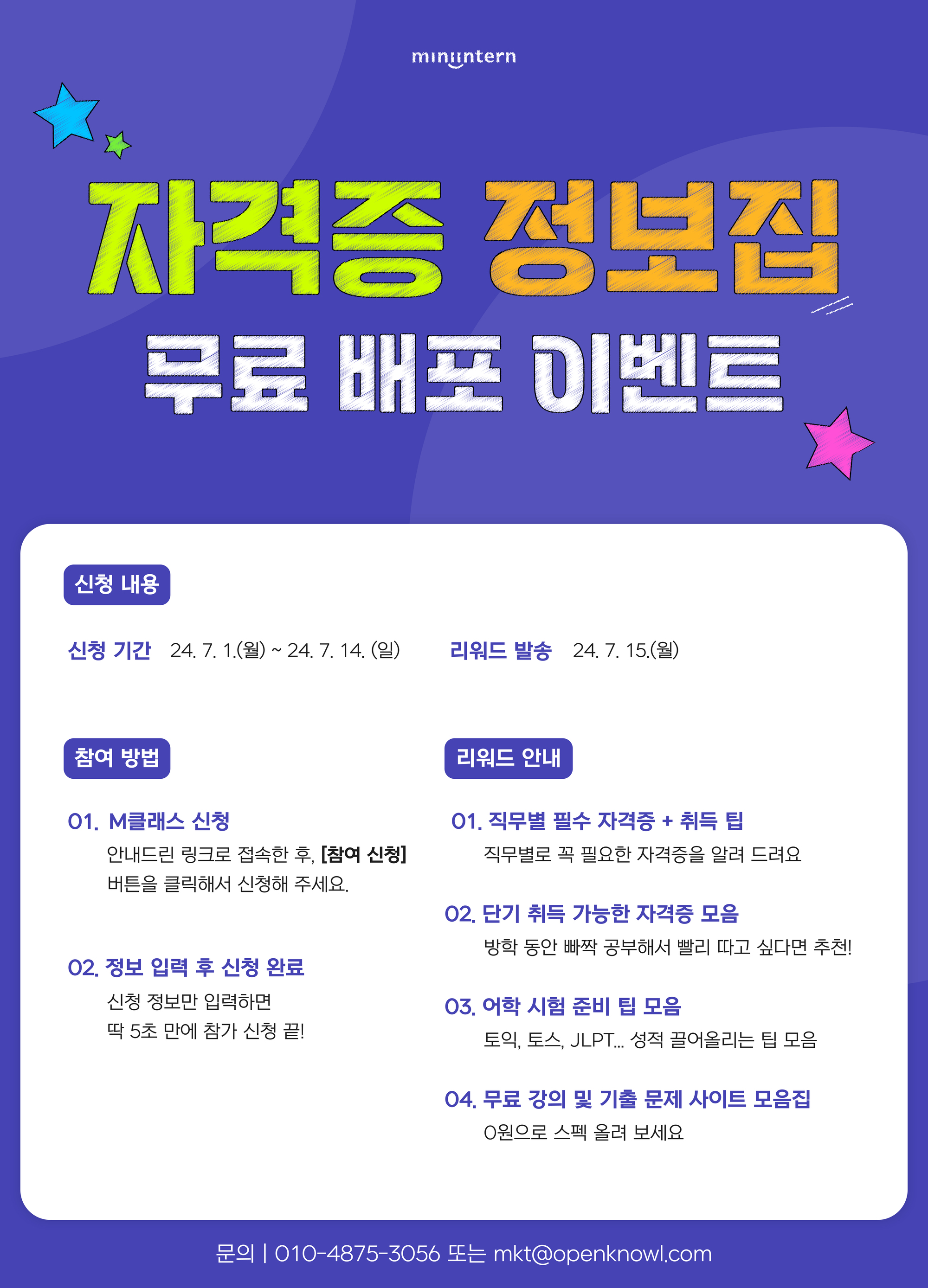 [미니인턴] 자격증 정보집 무료 배포 이벤트