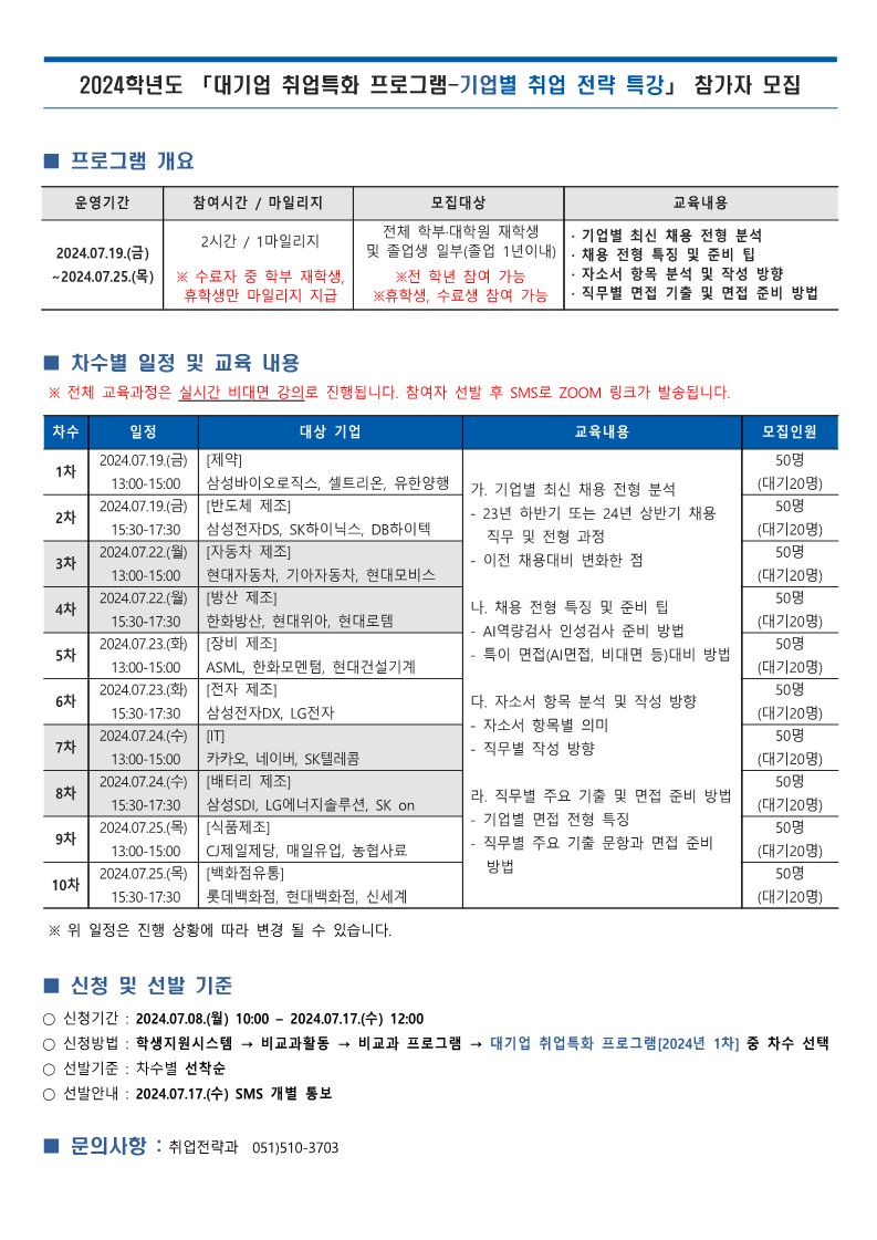 [취업전략과]대기업 취업특화 프로그램(기업별 취업전략 특강) 참가자 모집