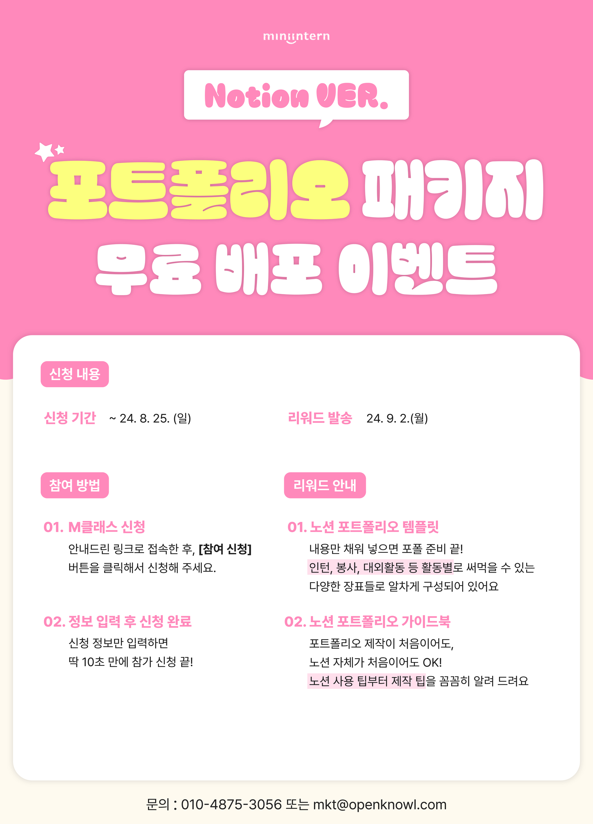 [미니인턴] 노션 Ver. 포트폴리오 패키지 무료 배포 이벤트