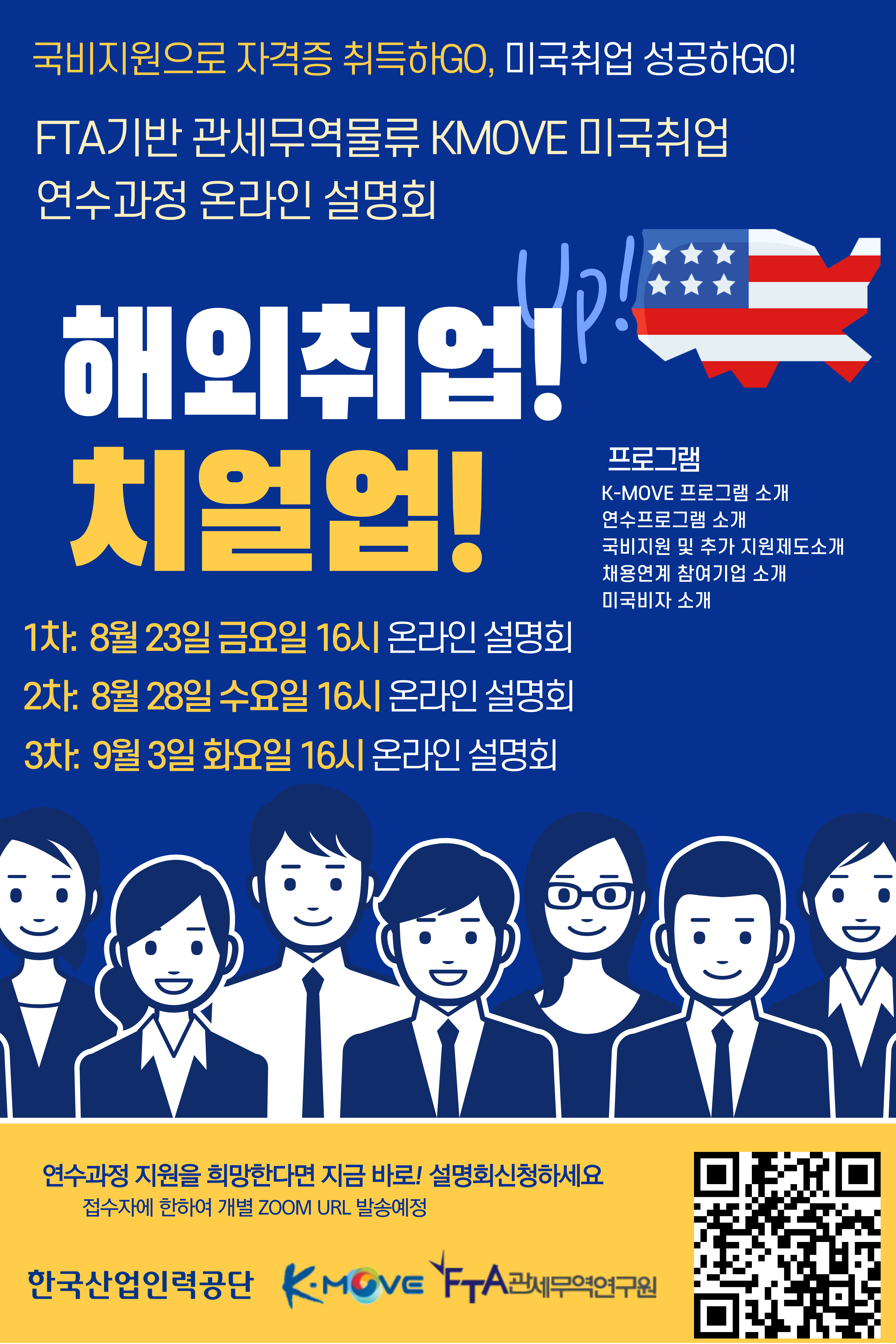 [한국산업인력공단] K-move스쿨 미국인턴/취업 연계과정 국비연수생 모집 설명회(~09.02)
