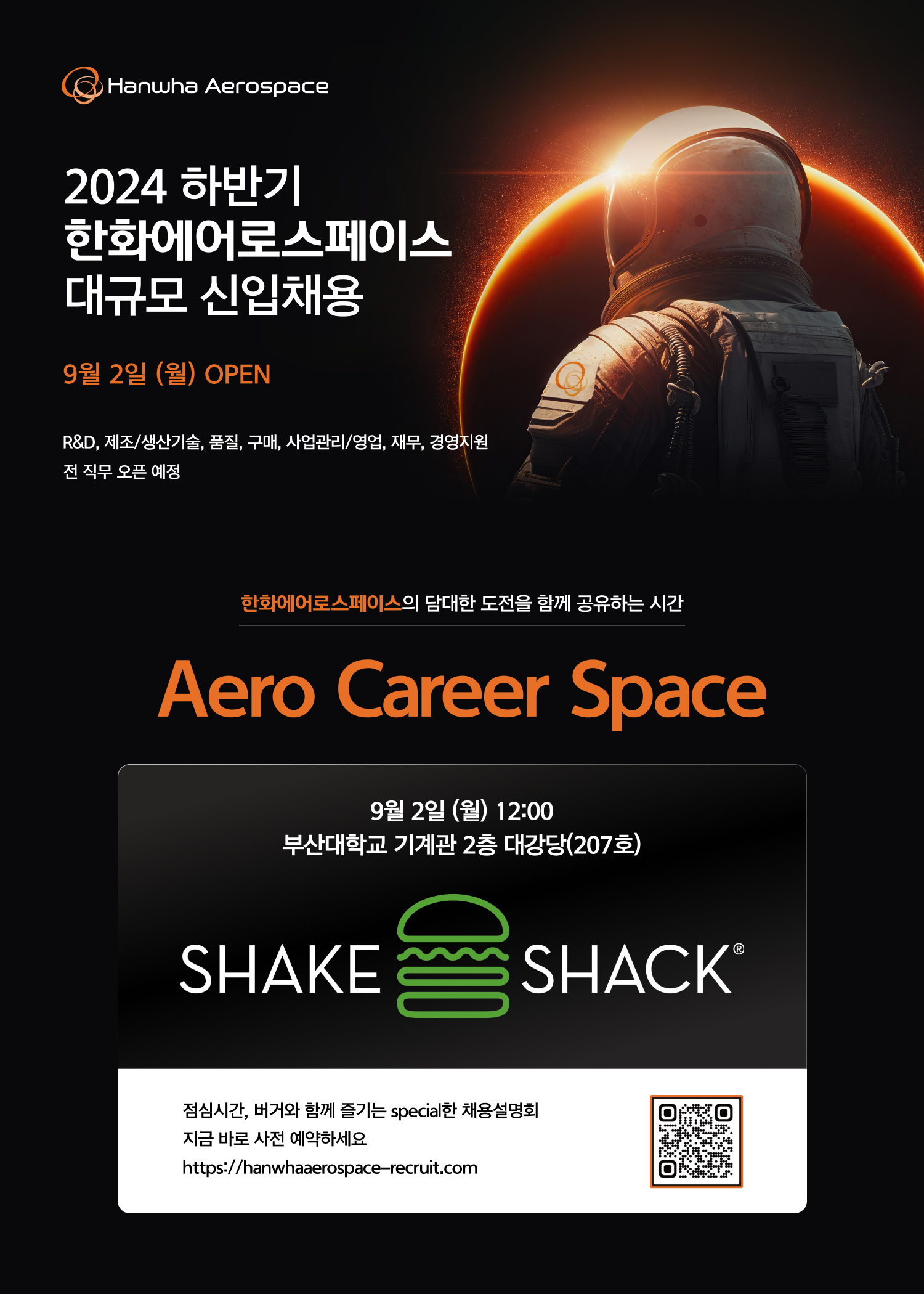 한화에어로스페이스 채용설명회 및 상담회 일정을 아래와 같이 알려드리니, 관심있는 학생들의 많은 참여 바랍니다.