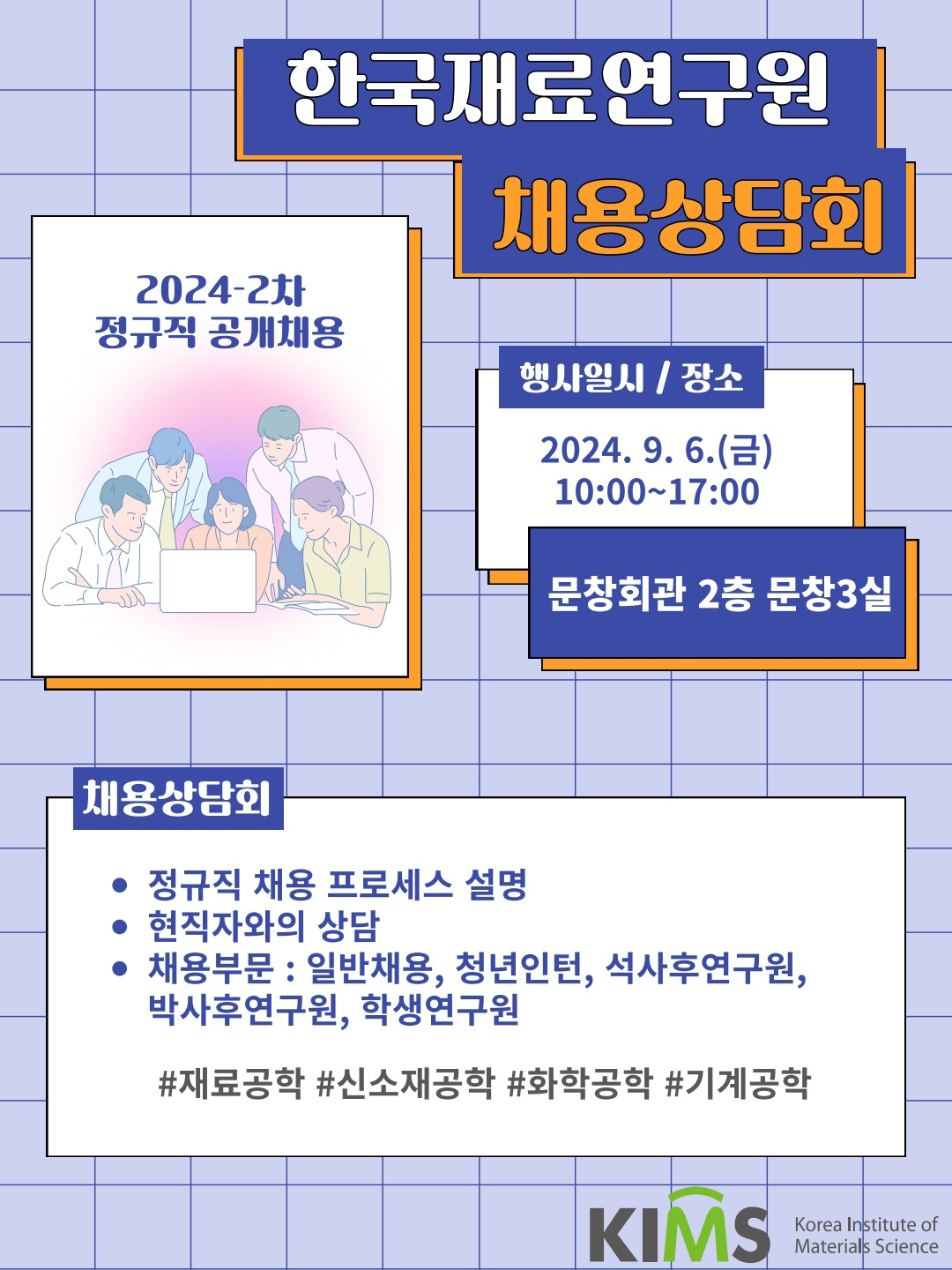 내용: 한국재료연구원 소개 및 24년 하반기 공개채용 안내·상담
