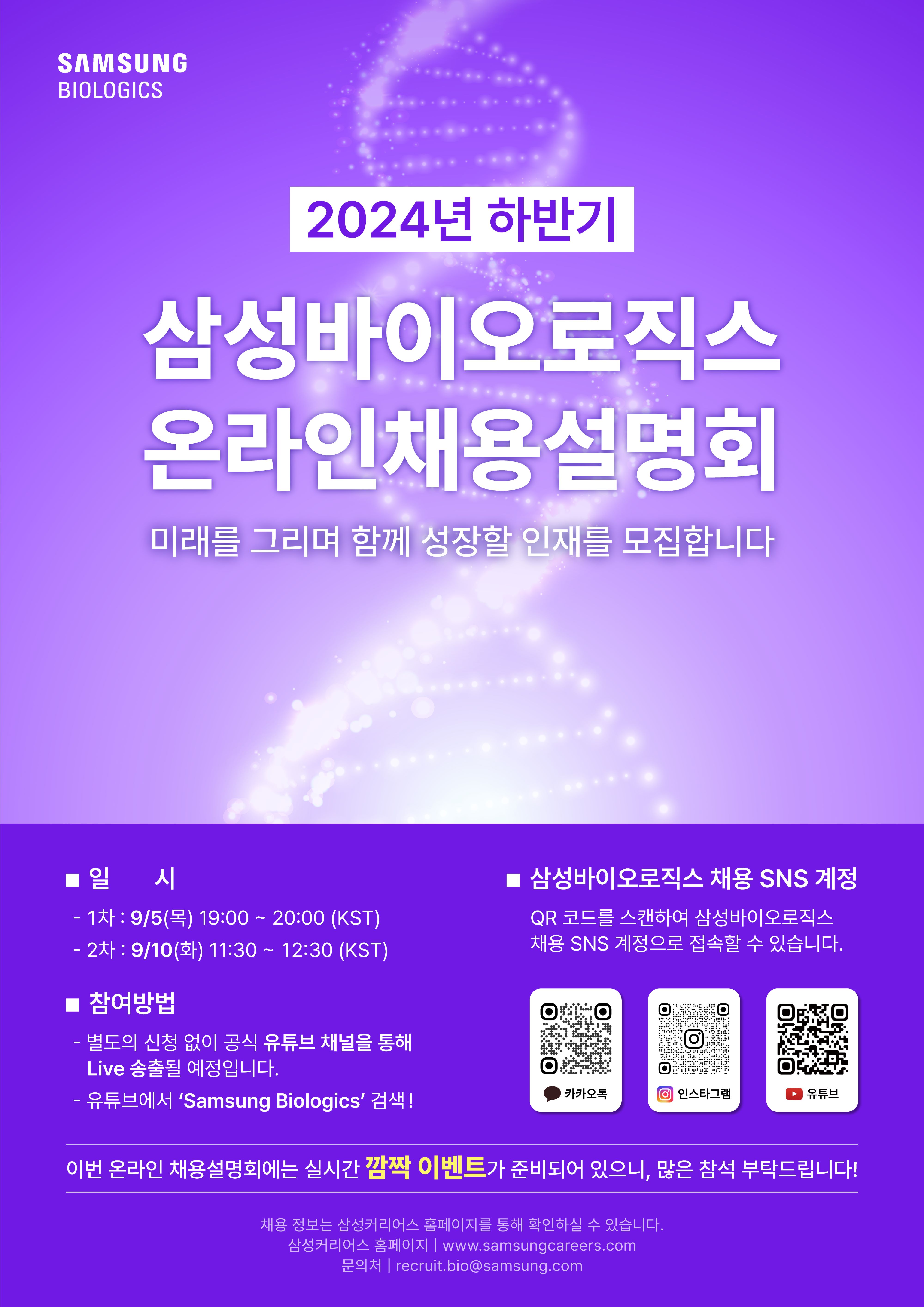 여러분을 『'24년 하반기 삼성바이오로직스 온라인 채용설명회』에 초대합니다!