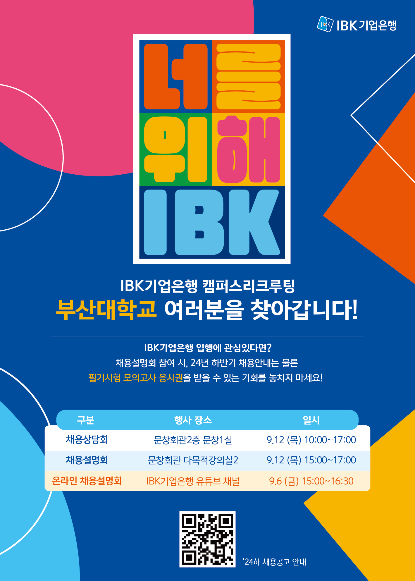 IBK기업은행 채용설명회 및 상담회 안내 (9/12)