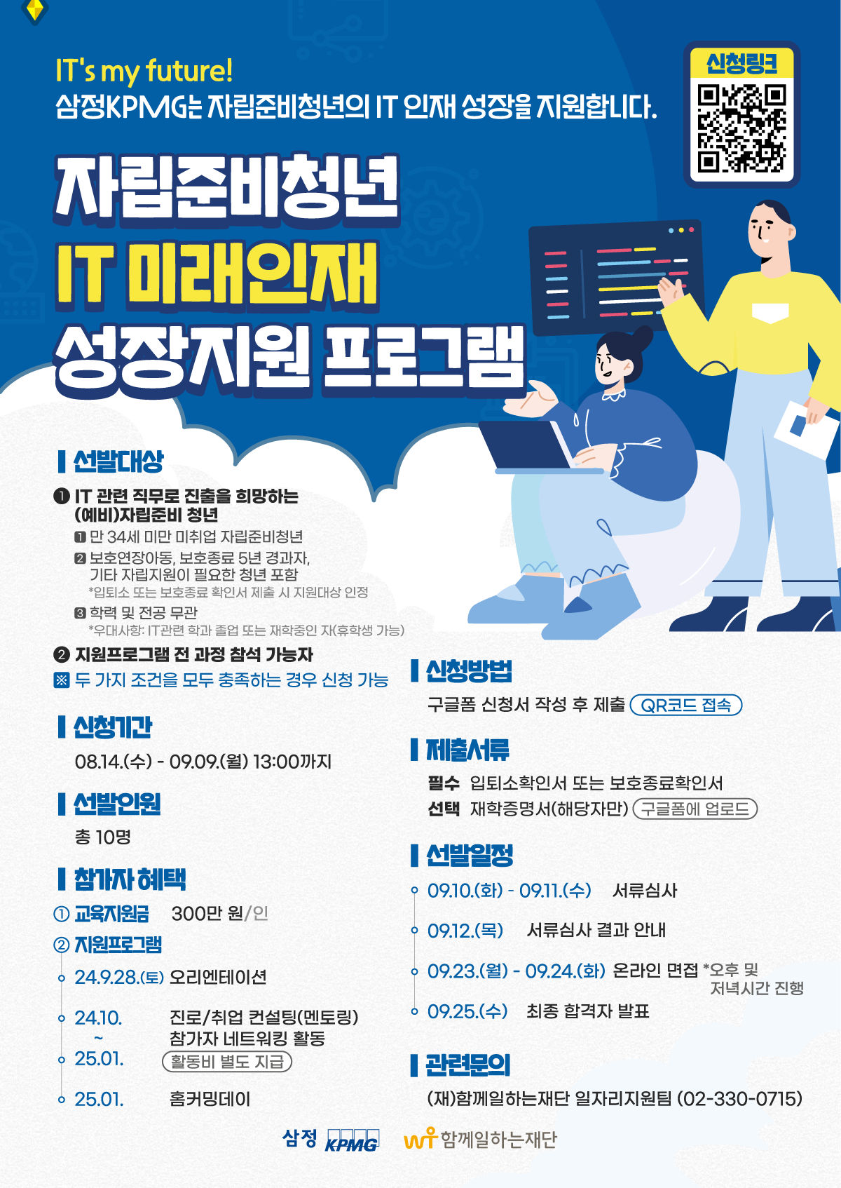 삼정KPMG 자립준비청년 IT 미래인재 성장지원 프로그램 참가자 모집