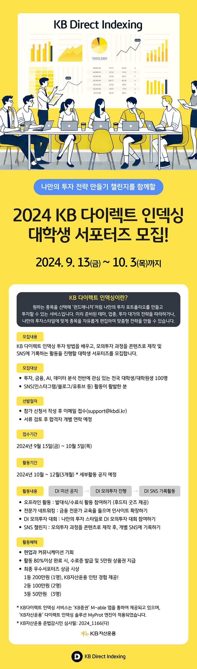 [KB자산운용] 2024 KB 다이렉트 인덱싱 대학생 서포터즈 모집 (~10/3)