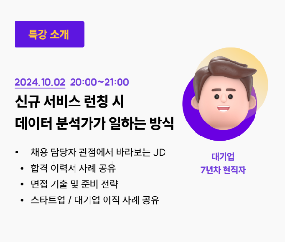 데이터분석가 현직자 특강 초대합니다 (10.2/8pm/온라인)