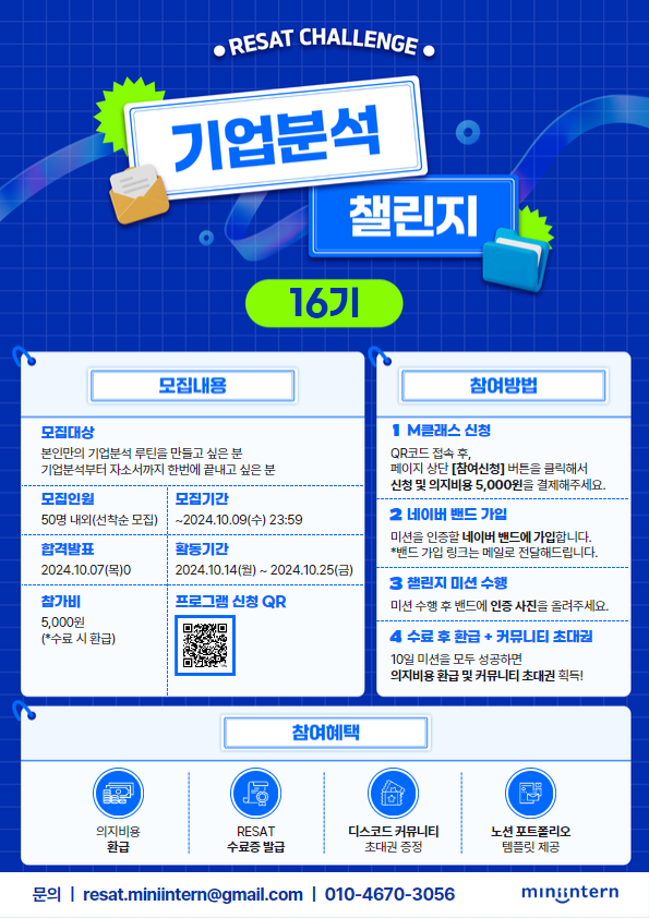 [오픈놀/RESAT] 10일 동안 진행하는 취준 루틴 형성 챌린지! 'RESAT 기업분석 챌린지 16기' 선착순 모집! (~10/09)