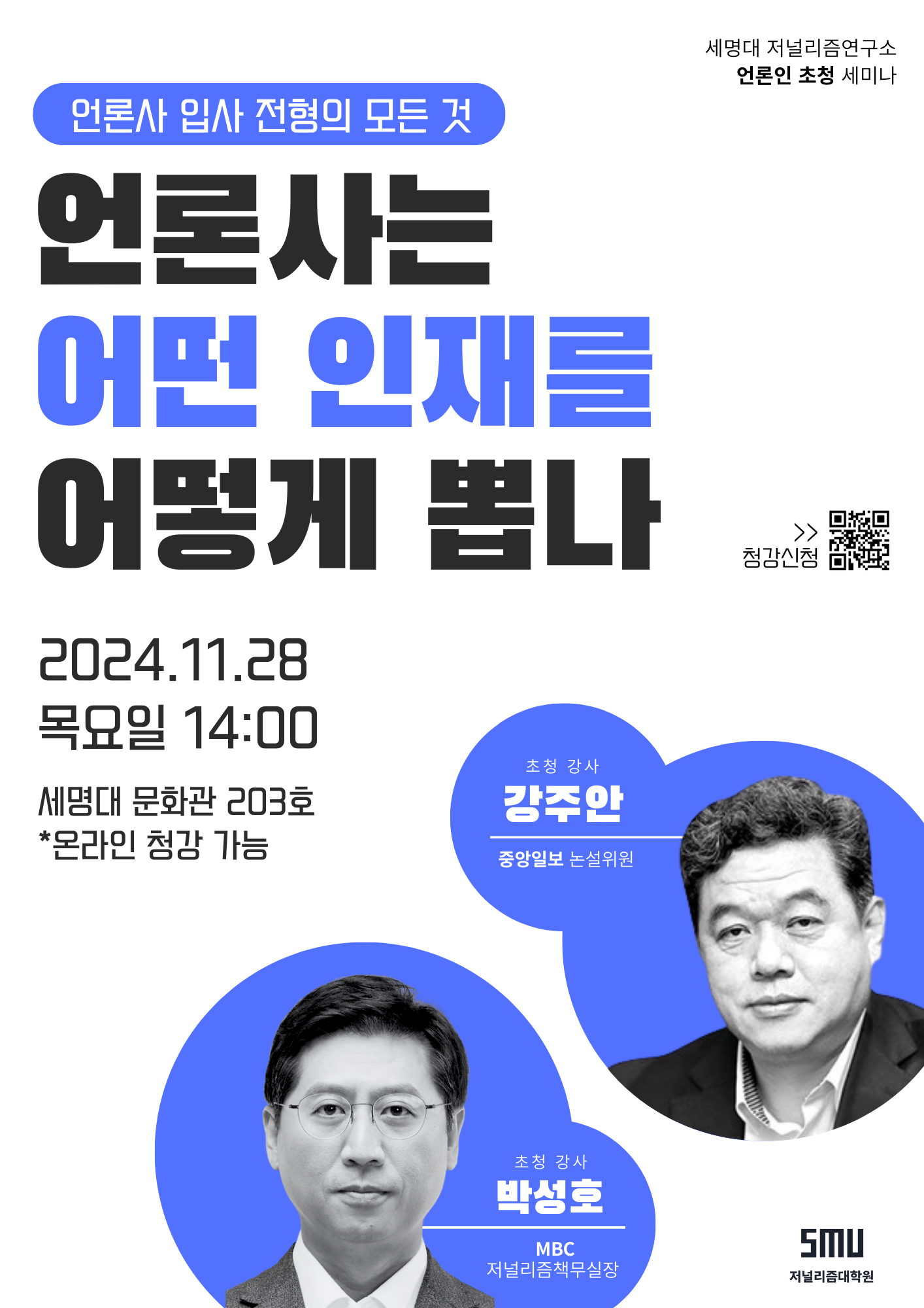 강주안 중앙일보 논설위원과 박성호 MBC 저널리즘책무실장 초청 특강을 개최합니다.