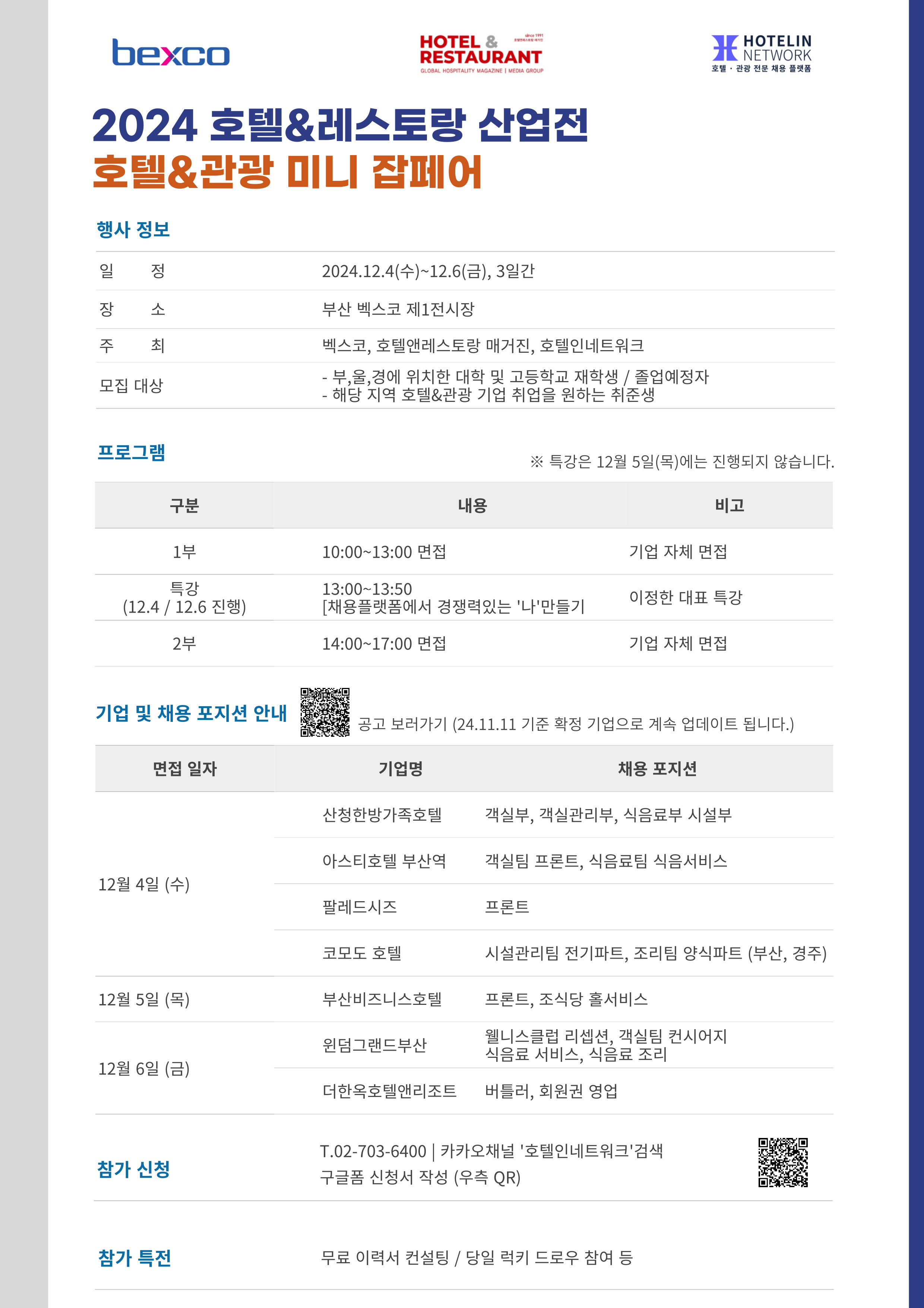 2024 호텔&레스토랑 산업전 호텔&관광 미니잡페어