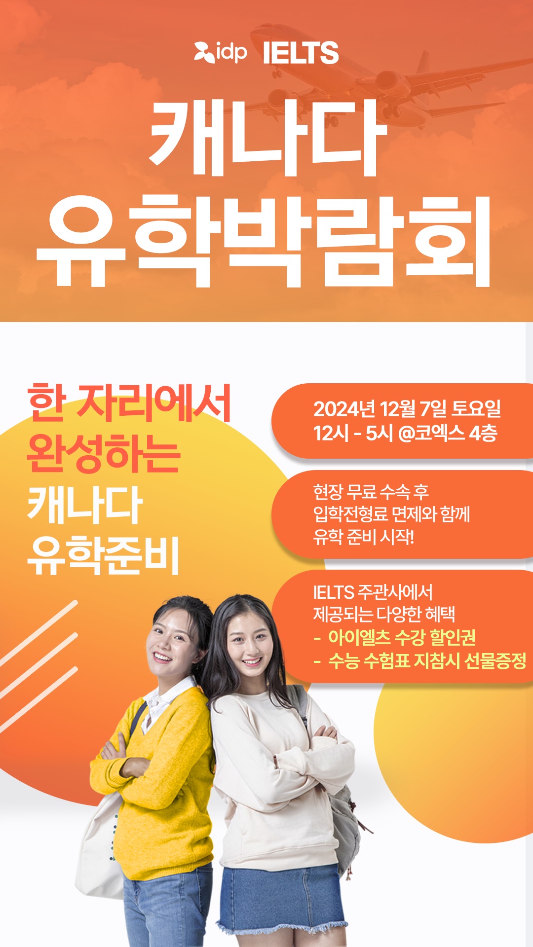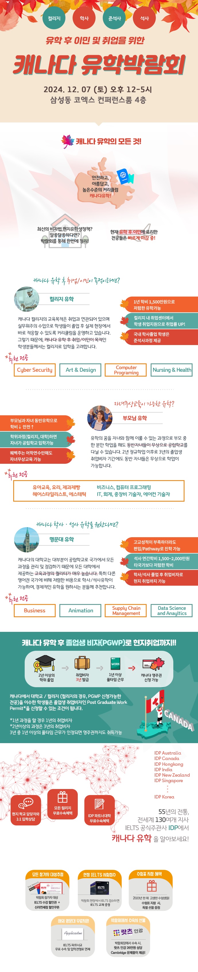 [ 2024 캐나다 유학박람회 ] 지금 바로 신청하기 ▶ https://idpkorea.net/캐나다유학박람회