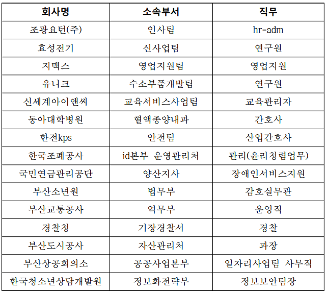 5. 행사내용 : 회사소개, 취업성공사례, 담당직무소개, 그룹멘토링 등