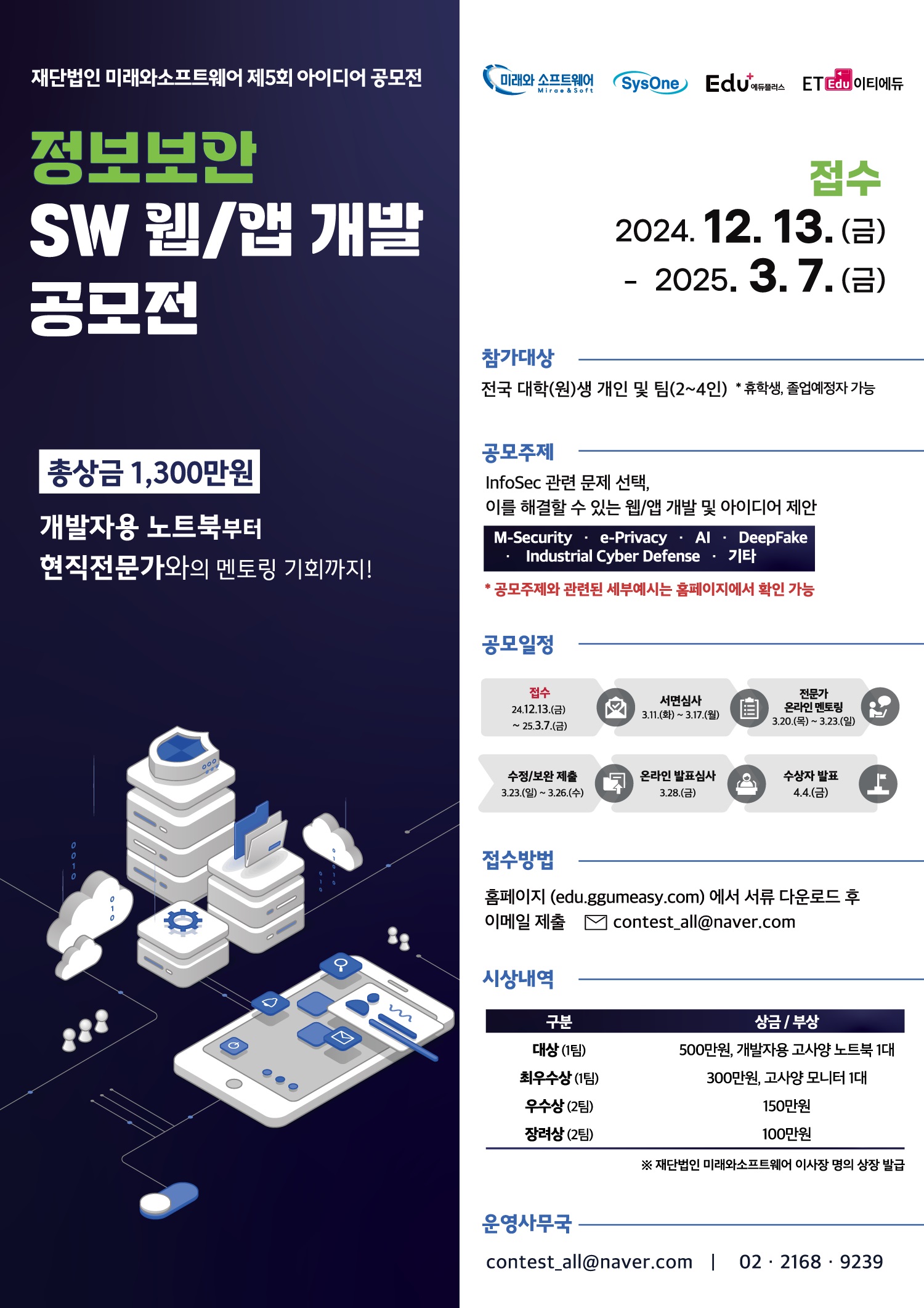 [재단법인 미래와소프트웨어] 정보보안 SW 웹/앱 개발 공모전