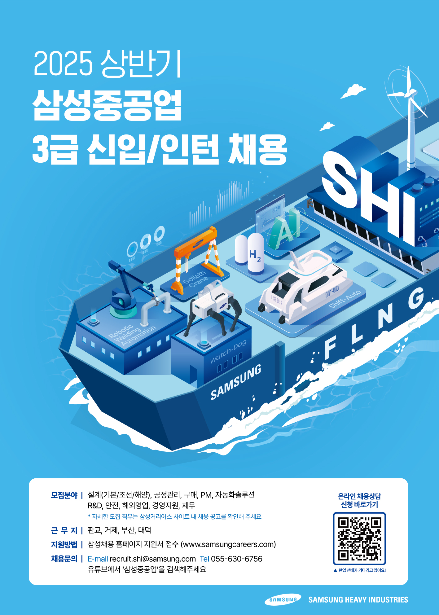 삼성중공업 2025 상반기 채용설명회 및 상담회 일정을 아래와 같이 알려드리니, 관심 있는 분들의 많은 참여 바랍니다.