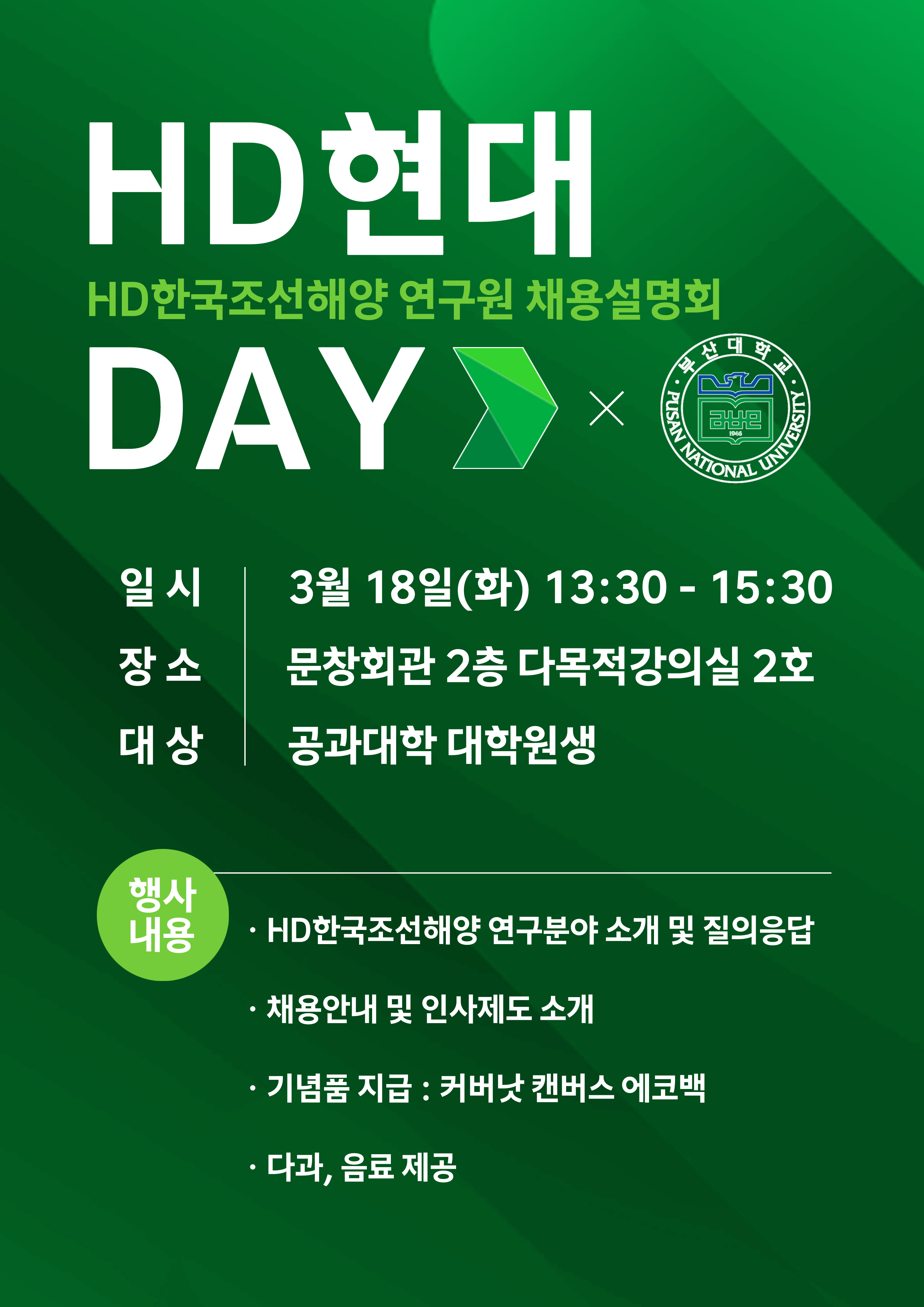 [HD현대 DAY] HD한국조선해양 연구원 채용설명회 일정 안내(대학원생, 3/18)