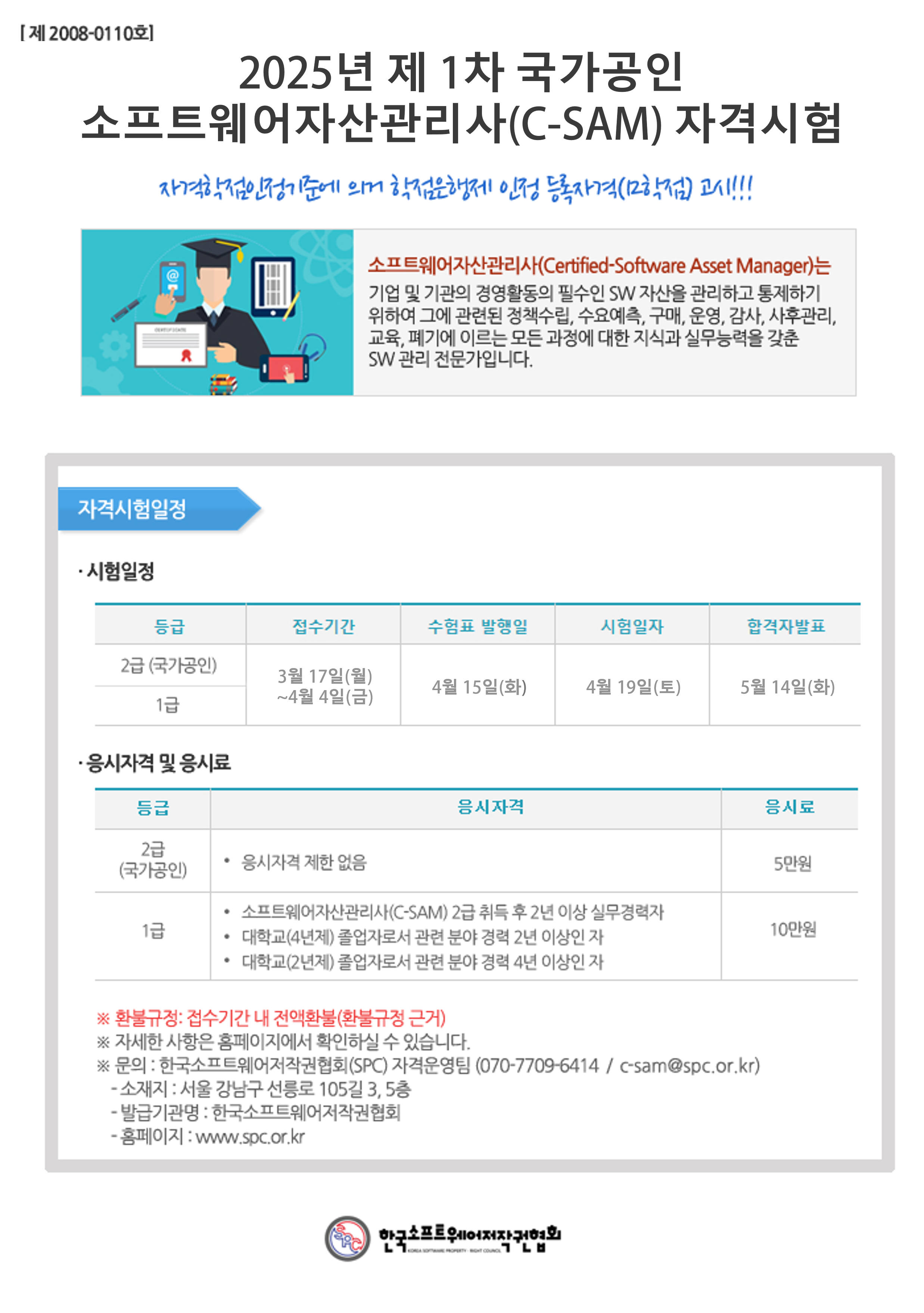 [한국소프트웨어저작권협회] 국가공인 소프트웨어자산관리사(C-SAM) 자격증 응시료 프로모션 안내
