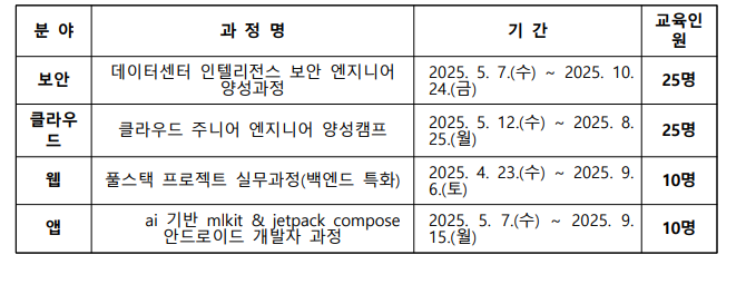 ■ 분야/규모: 4개 분야(클라우드, 보안, 웹, 앱), 4개 클래스 70명