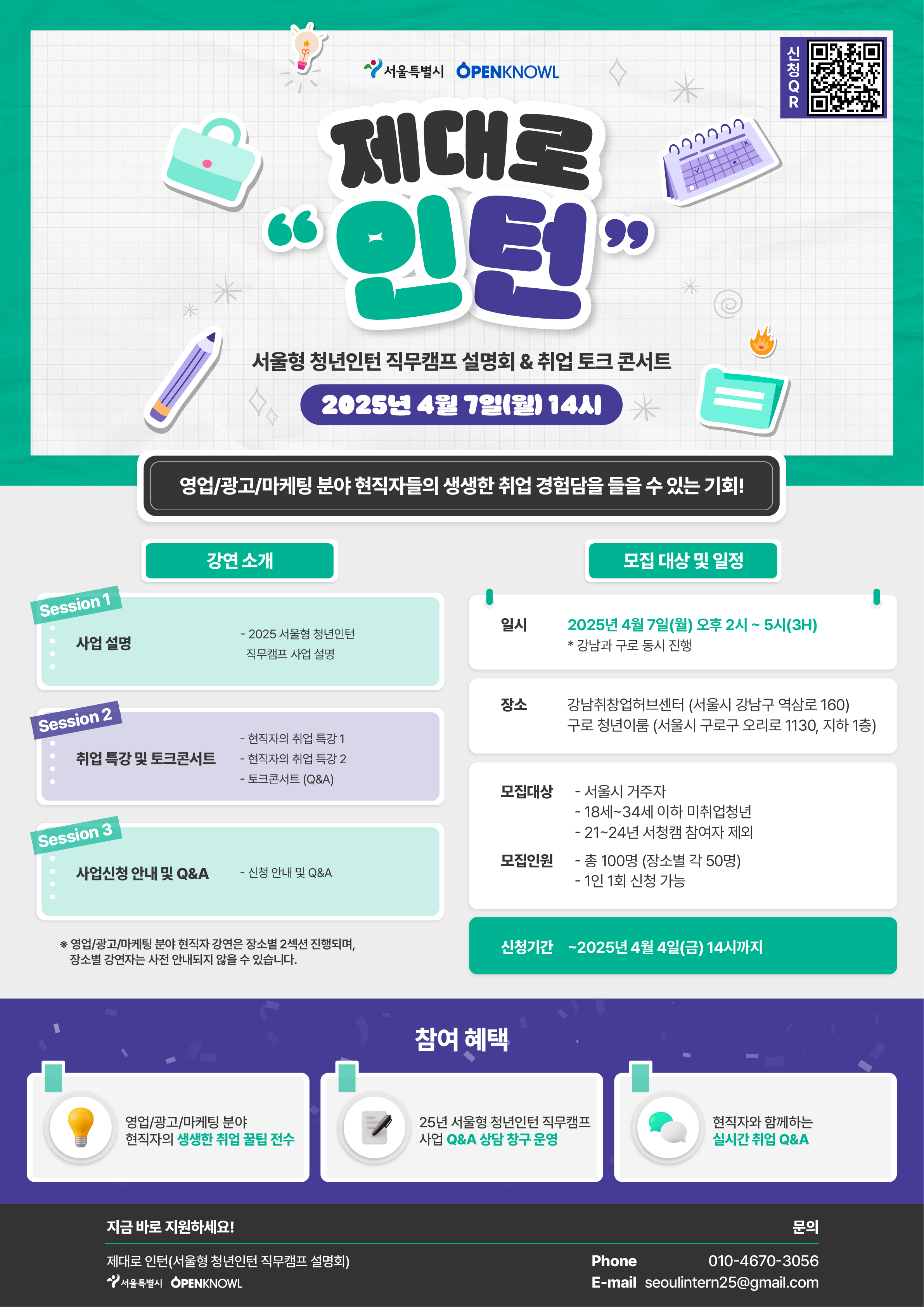 이메일 : seoulintern25@gmail.com(평일 10시-18시/ 주말 & 공휴일 휴무)