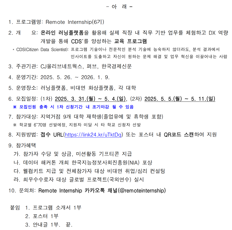 미래내일 청년일경험 지원사업(ESG형) Remote Internship 6기 참가자 모집을 아래와 같이 알려드리니, 관심 있는 분들의 많은 지원 바랍니다.