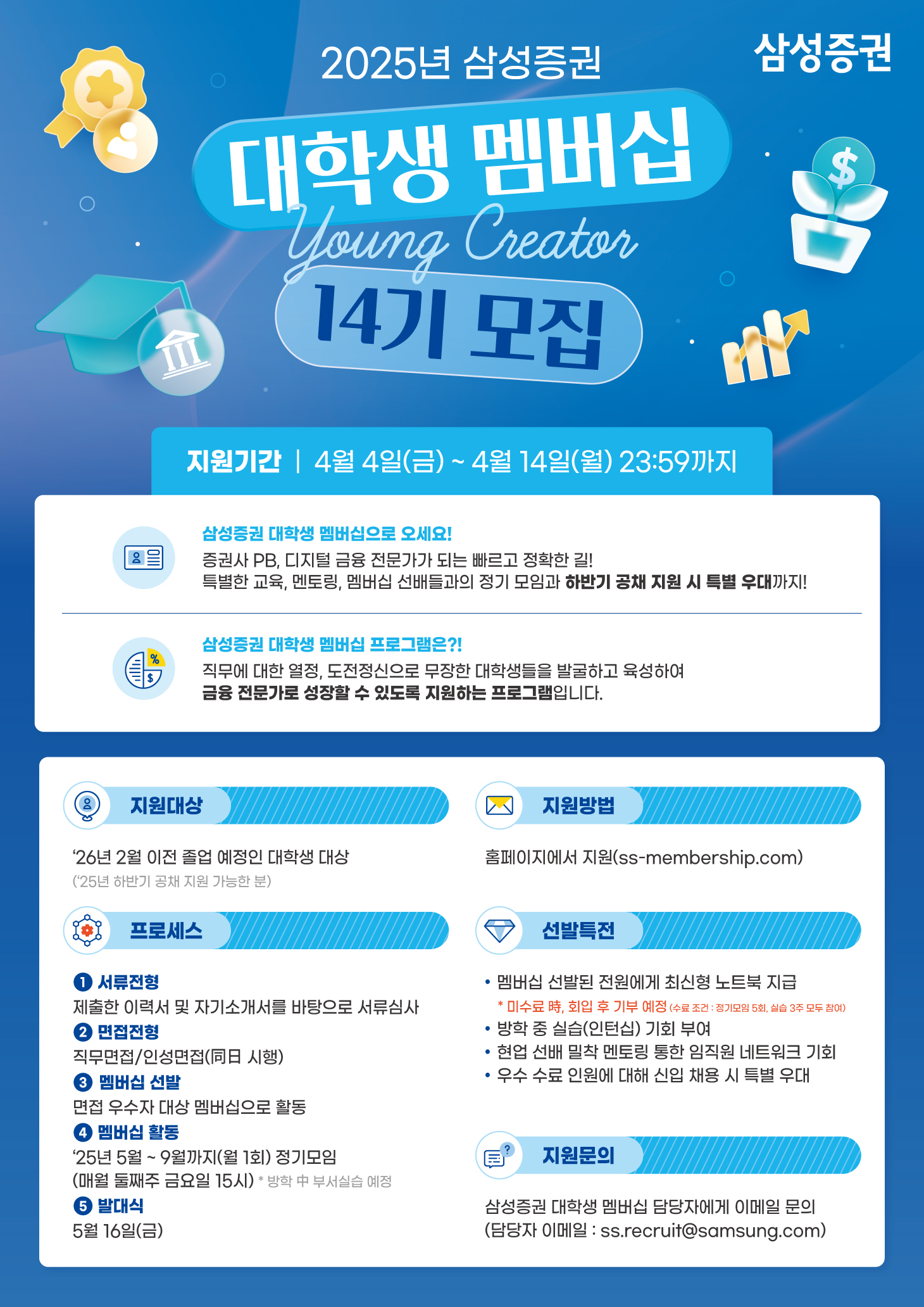 [삼성증권] 2025 대학생 멤버십 영크리에이터 14기 모집 공고