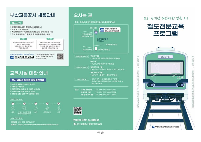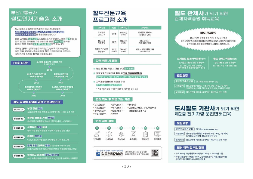 부산교통공사 철도인재기술원 「철도면허 취득 및 취업설명회」 개최 알림