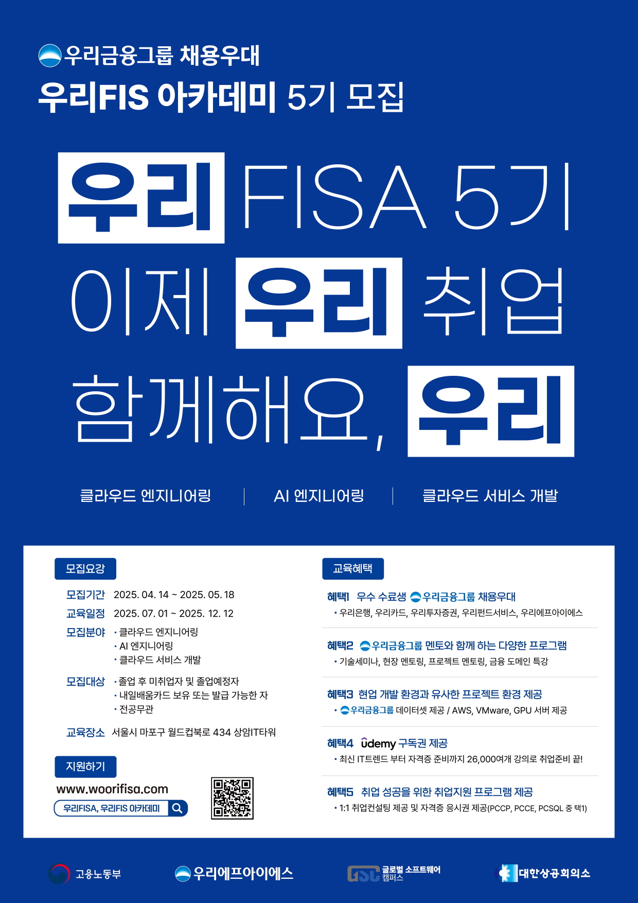 [우리금융그룹] KDT [우리FIS 아카데미] 5기 모집 중 (~5/18)