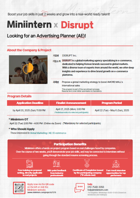 [Miniintern] If you dream of becoming an advertising planner, plan a global marketing strategy for AMORE MALL and build real experience! (~April 20)
