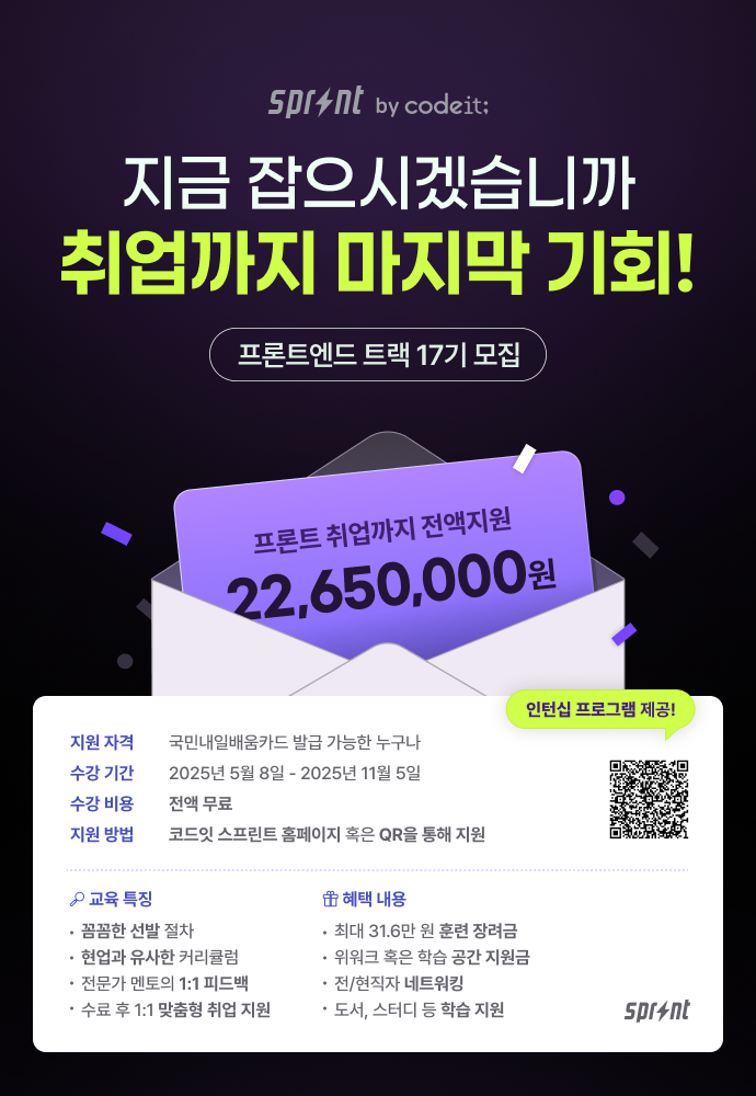 코드잇 스프린트 지금 모집 중 ➡️ https://code.it/uZv7VLa