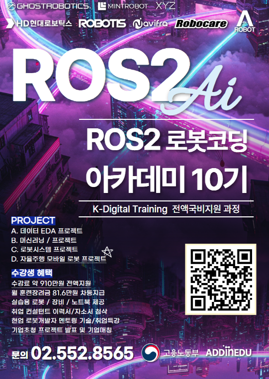 [애드인에듀] 2025년 상반기 국비지원 교육과정(ROS2 자율주행 로봇·AI 및 3D 비주얼 아티스트) 수강생 모집