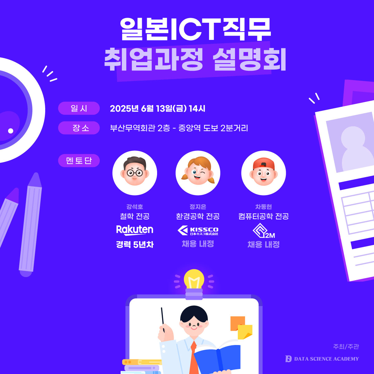 - 교육장: 부산무역회관 2-3층 데이터사이언스아카데미 (부산시 중구 충장대로 11)