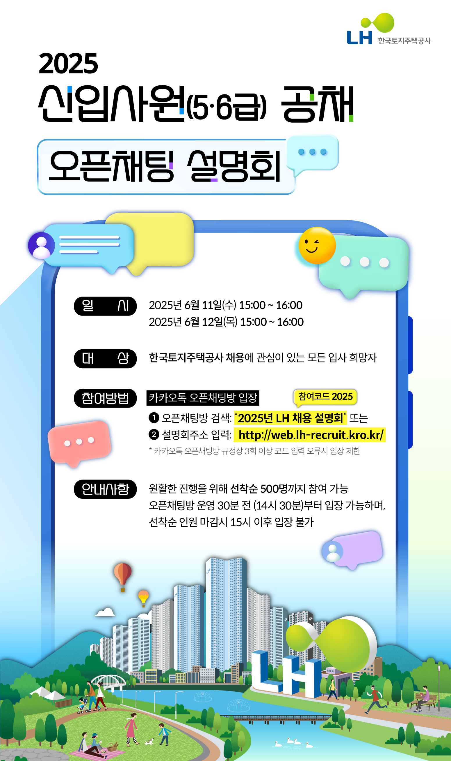 2025년 LH 한국토지주택공사 신입사원 공채 오픈채팅 설명회 홍보 안내