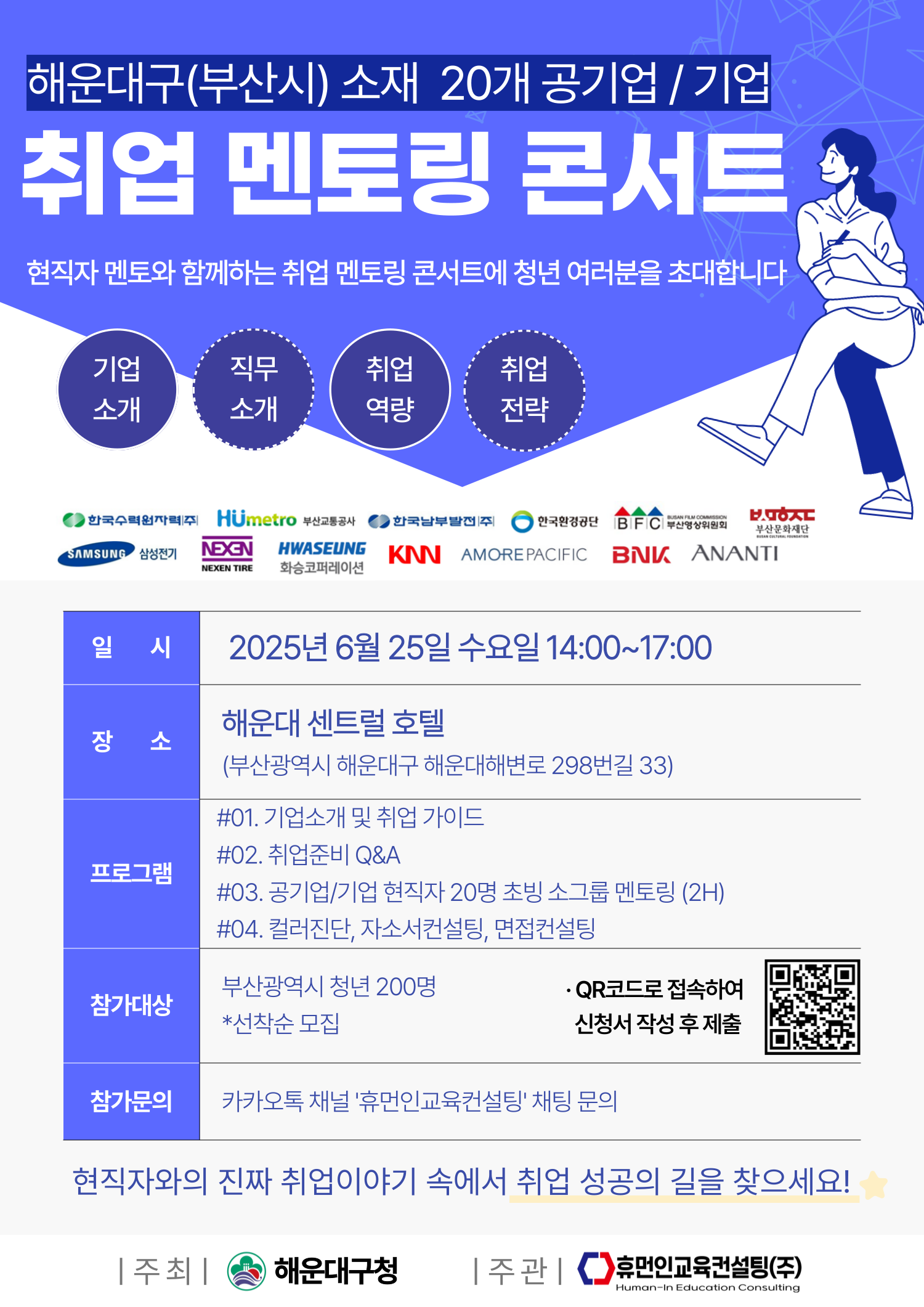 부산광역시 해운대구청에서 주최하는 「취업 멘토링 콘서트」에 청년 여러분을 초대합니다.