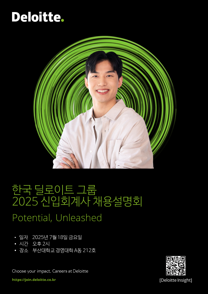 딜로이트 안진회계법인 채용설명회 일정을 아래와 같이 알려드리니, 관심 있는 분들의 많은 참여 바랍니다.
