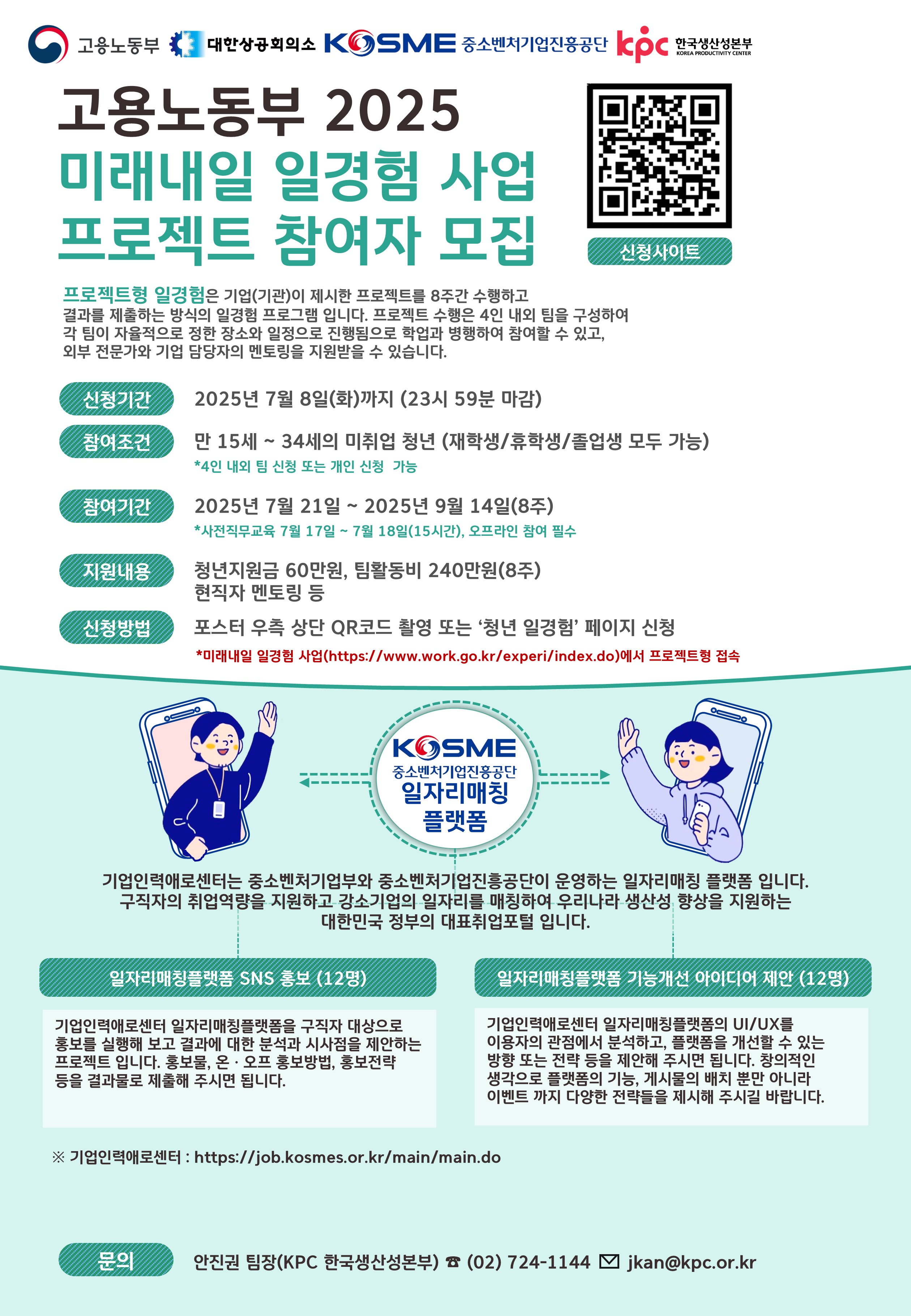 포스터의 QR 사이트(청년 일경험 플랫폼)의 신청 공고 페이지 확인