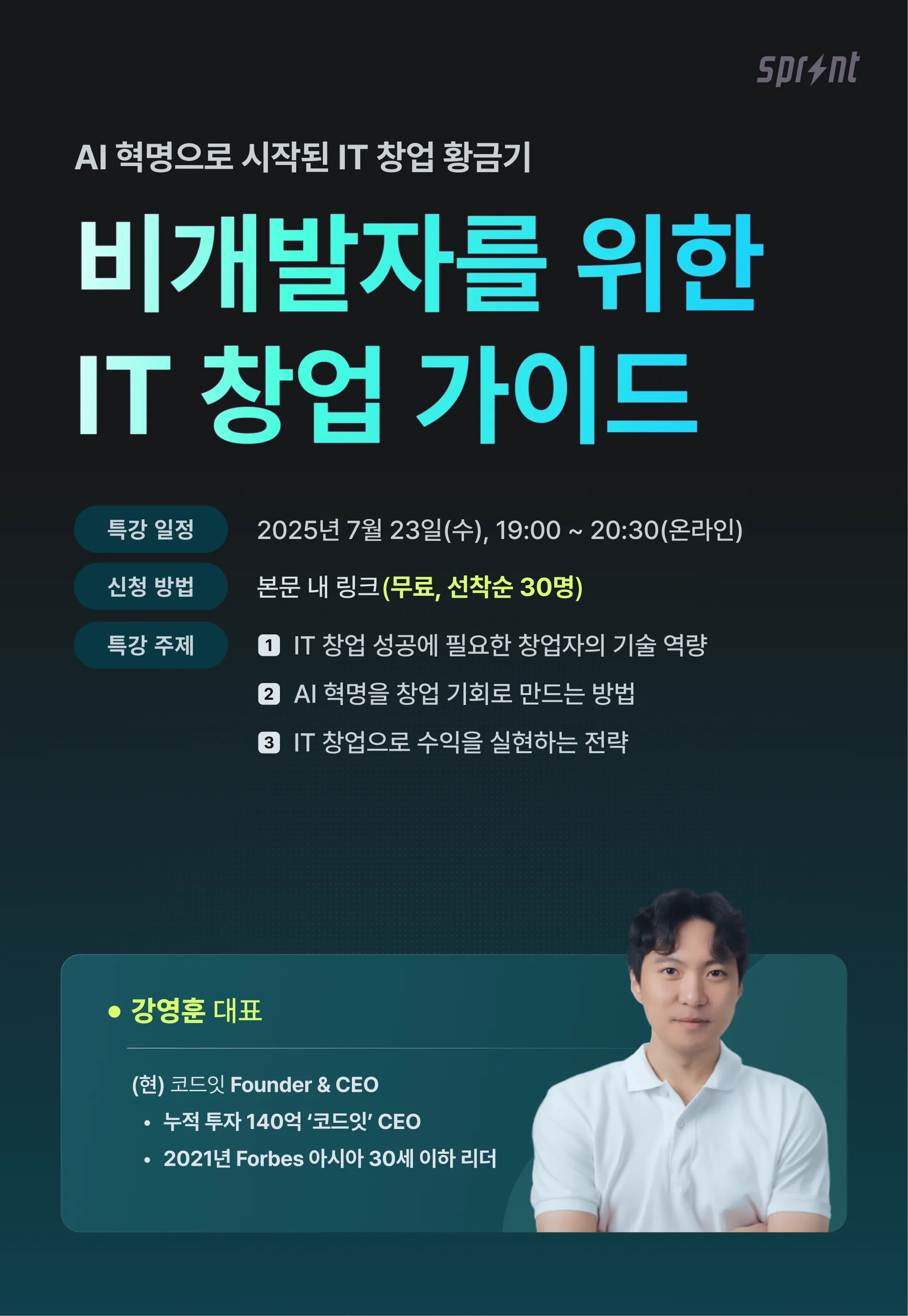 - 특강 참여 후, 스프린트 풀스택 엔지니어 부트캠프에 지원 하시면 서류 가산점을 드립니다.