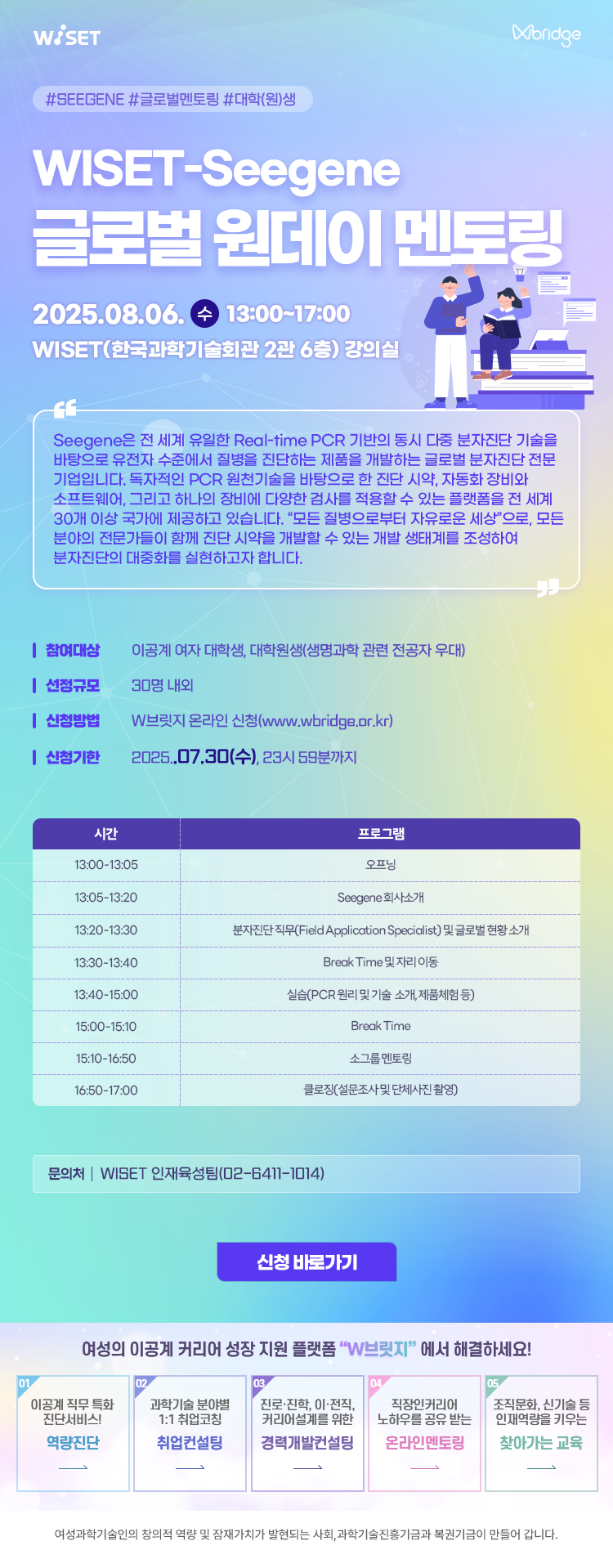 WISET-Seegene 원데이 글로벌 멘토링 멘티 모집 공고