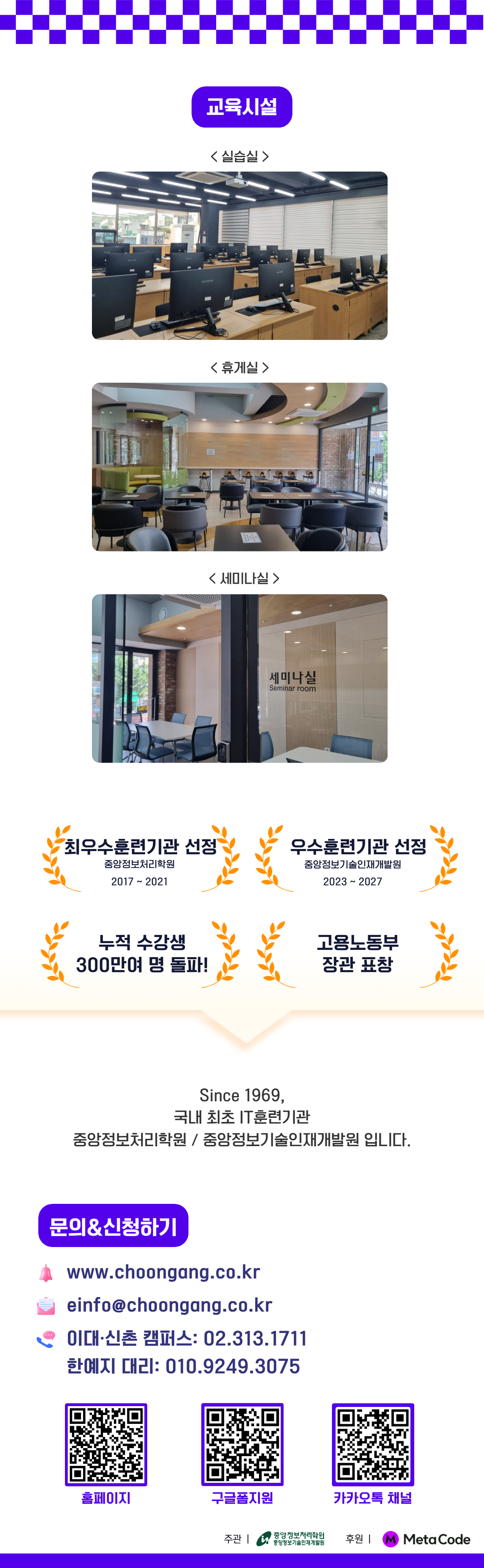 - 장소 : 중앙정보기술인재개발원 이대캠퍼스, 2호선 이대역 6번출구 앞