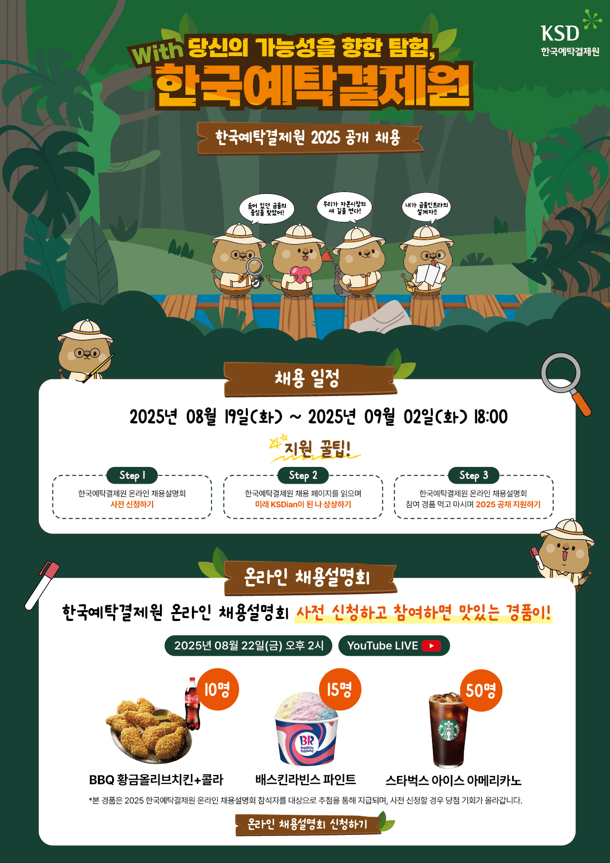 - 행사명: 2025 한국예탁결제원 온라인 채용설명회