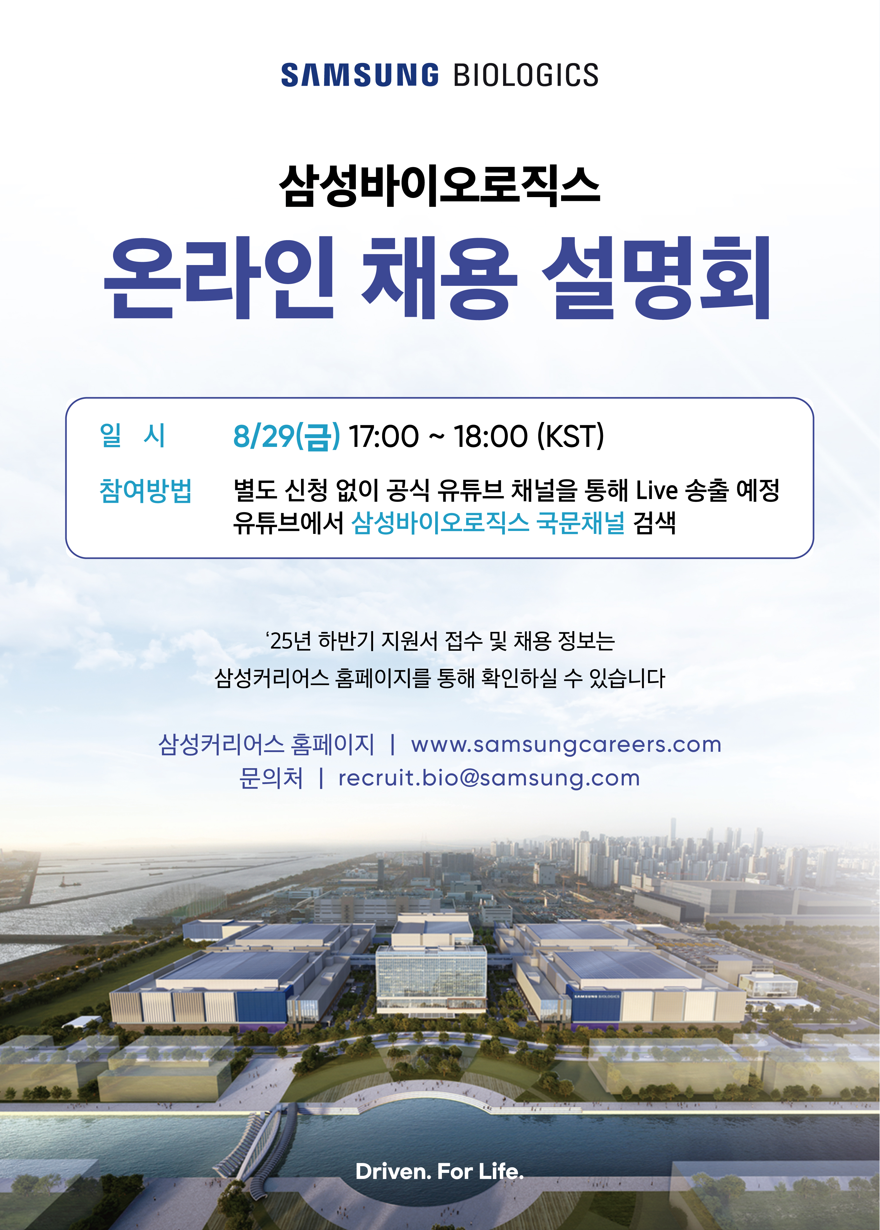여러분을 『'25년 하반기 삼성바이오로직스 온라인 채용설명회』에 초대합니다!