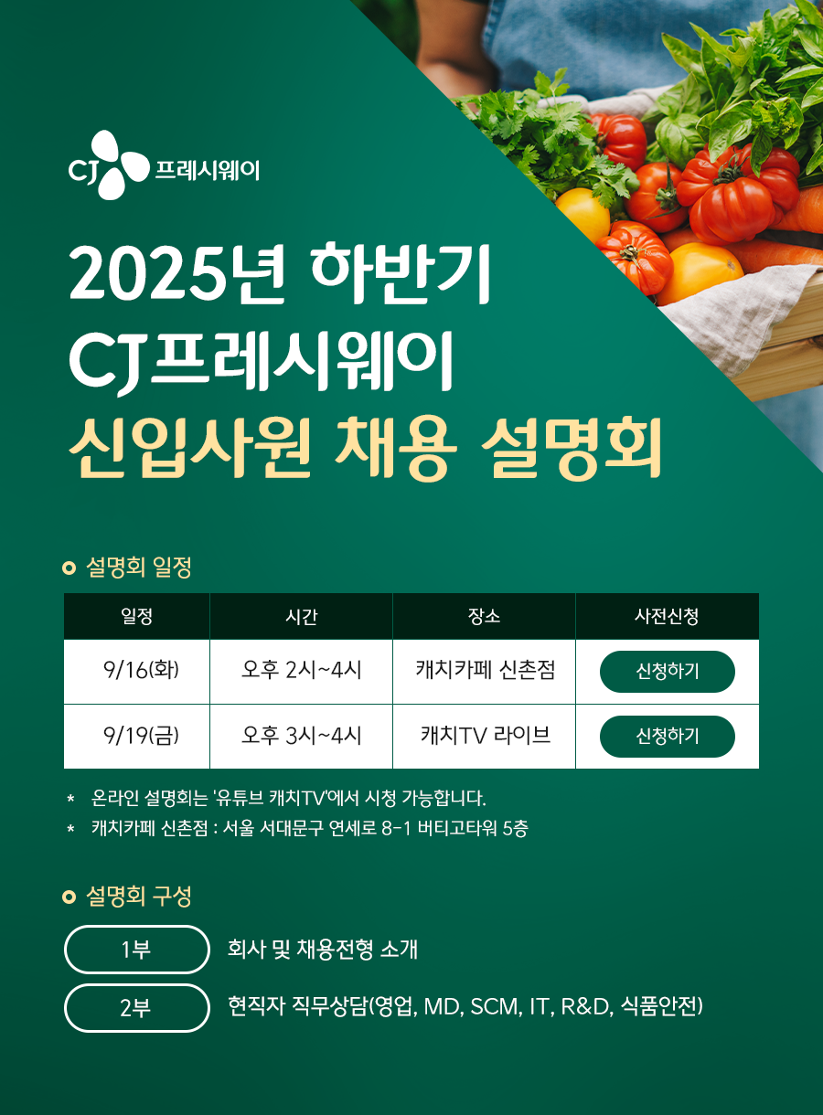 [CJ프레시웨이] 2025년 하반기 신입사원 채용 설명회