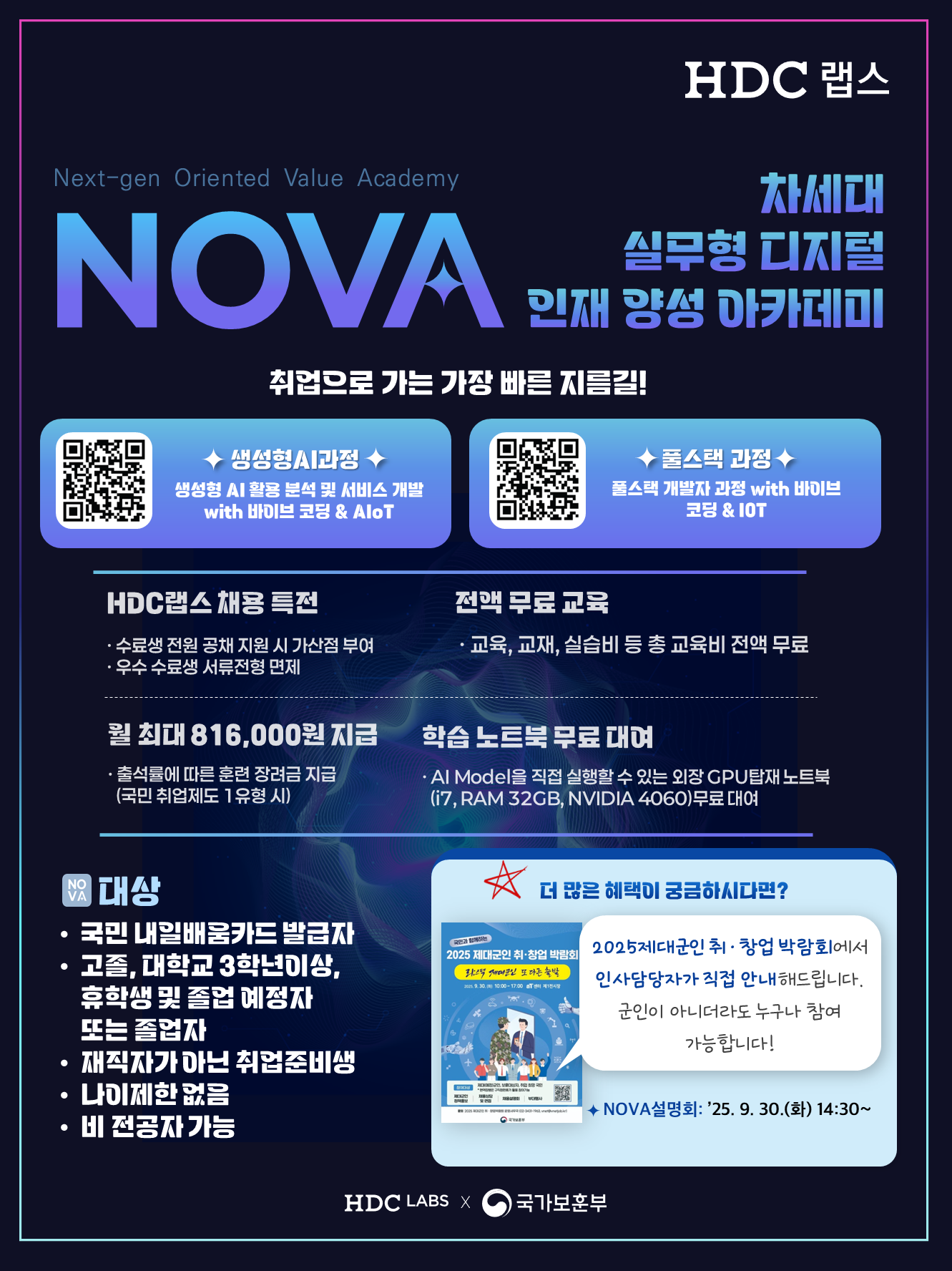 [HDC랩스] 2025 제대군인/청년 취·창업박람회 & KDT NOVA 설명회 개최 공지