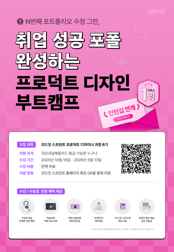 특강 참여 후, 프로덕트 디자이너 부트캠프에 지원하시면 서류 가산점을 드립니다!